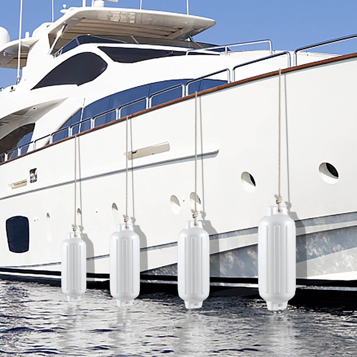 Conjunto de 4 Defensas de Barco Caneladas de Duplo Olhal Defensas de Barco de 4 Peças para Ancoragem Conjunto de Para-choques de Barco Branco