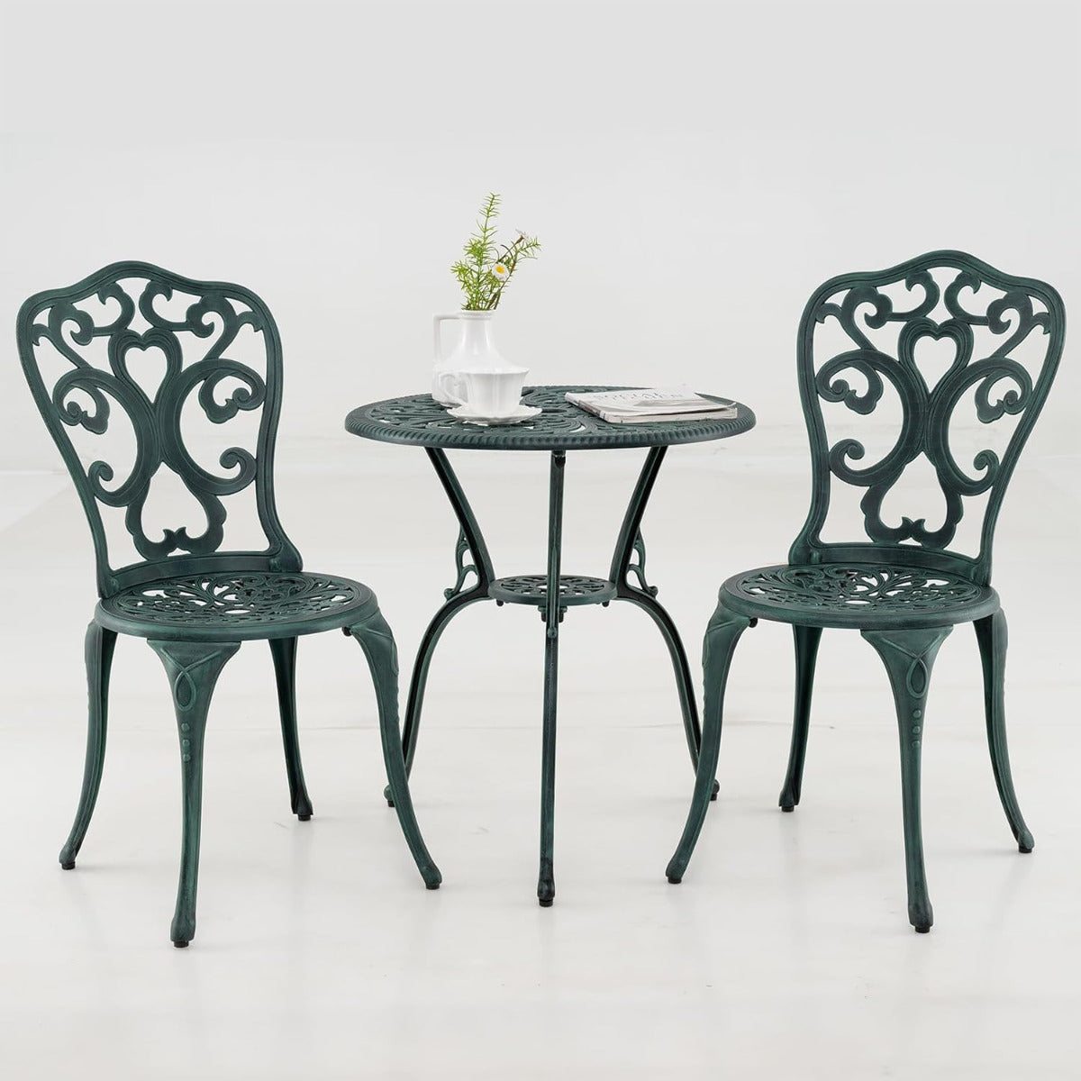 Conjunto de Jantar de Jardim - 2 Cadeiras e 1 Mesa - em Alumínio Fundido Verde com Orifício para Guarda-Sol