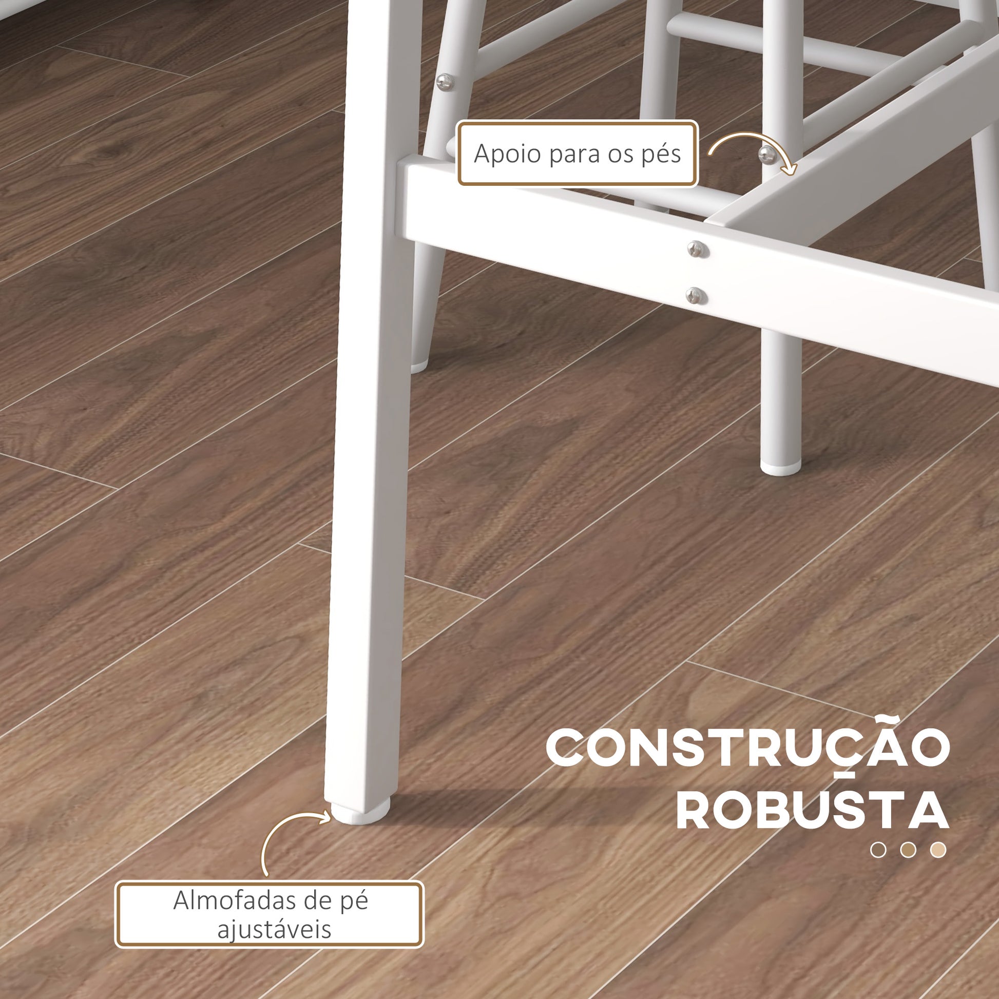 Este conjunto de mesa retangular e bancos de bar adapta-se facilmente a qualquer estilo de interior. Com suas linhas simples e modernas, este conjunto tem tudo para ser encantador. A estrutura e pernas em aço branco realçam o bonito tampo com efeito de madeira clara.