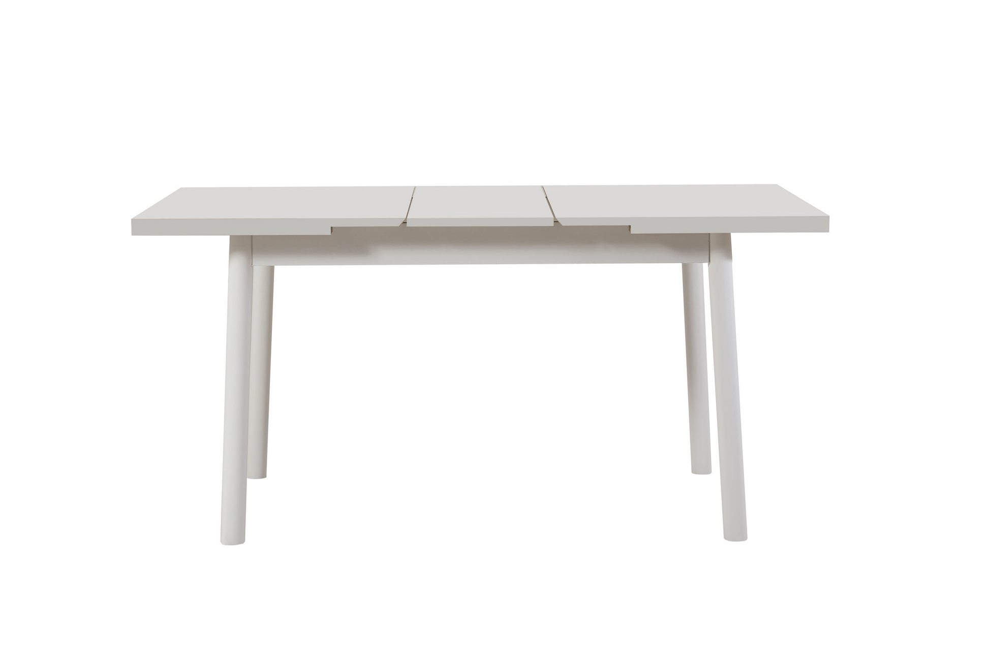 Conjunto de mesa de jantar extensível e cadeiras (4 peças), branco, 120-155 cm | Aglomerado 100% revestido em melamina, pernas de madeira de faia | Elegante e funcional para refeições modernas