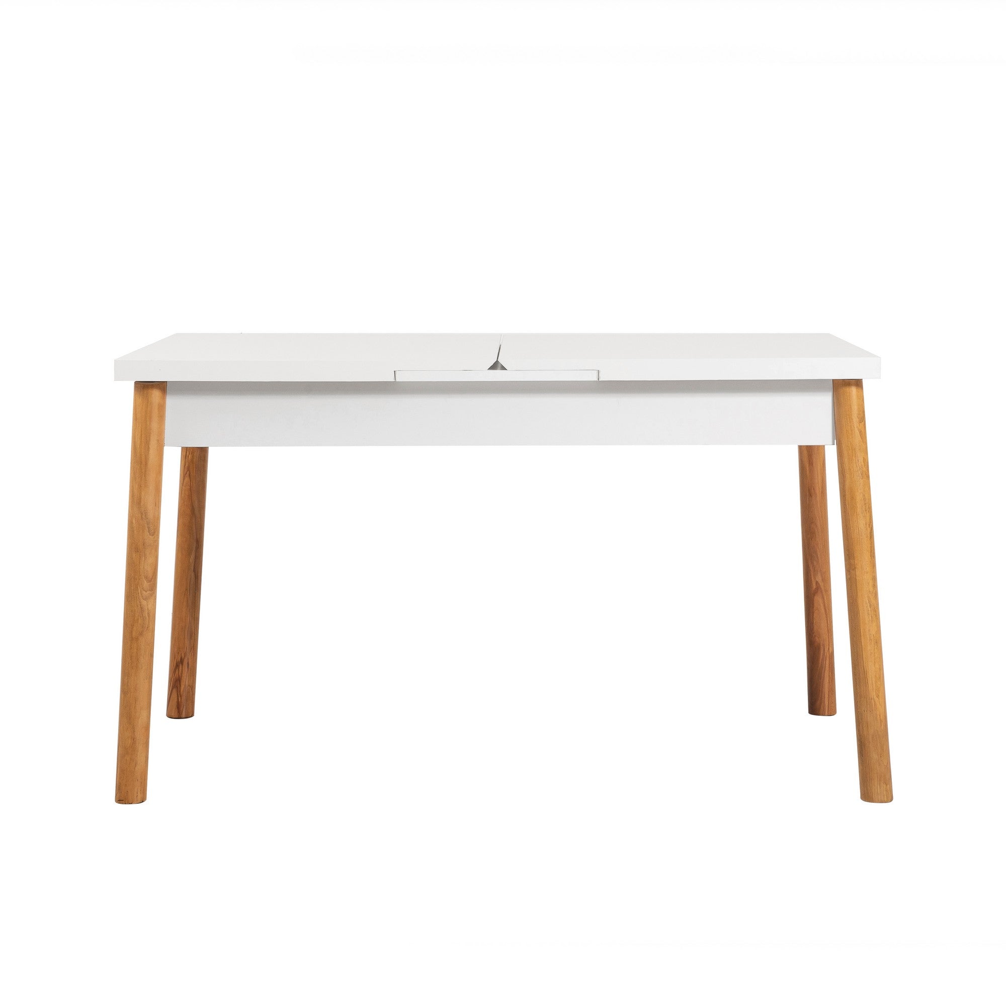Deixe-se seduzir pela beleza do design escandinavo com o nosso requintado conjunto de mesa de jantar extensível e cadeiras. Fabricado com a máxima precisão, este conjunto irá certamente elevar a sua experiência de jantar e dar um toque de sofisticação à sua casa.