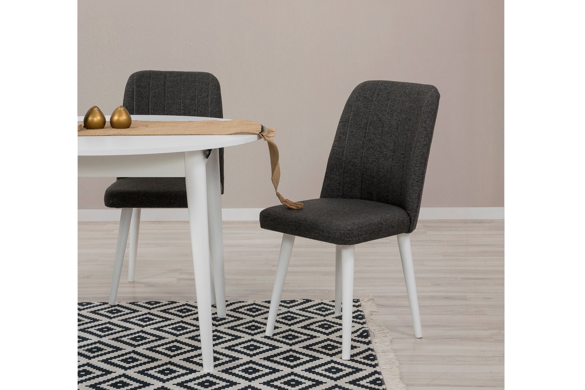 As quatro cadeiras incluídas neste conjunto foram meticulosamente concebidas para proporcionar o máximo conforto e apoio. Com a sua forma ergonómica e assentos almofadados, asseguram uma experiência de refeição agradável para si e para os seus entes queridos. A combinação das cores branco e antracite confere um toque contemporâneo, tornando este conjunto numa verdadeira peça de referência na sua sala de jantar.