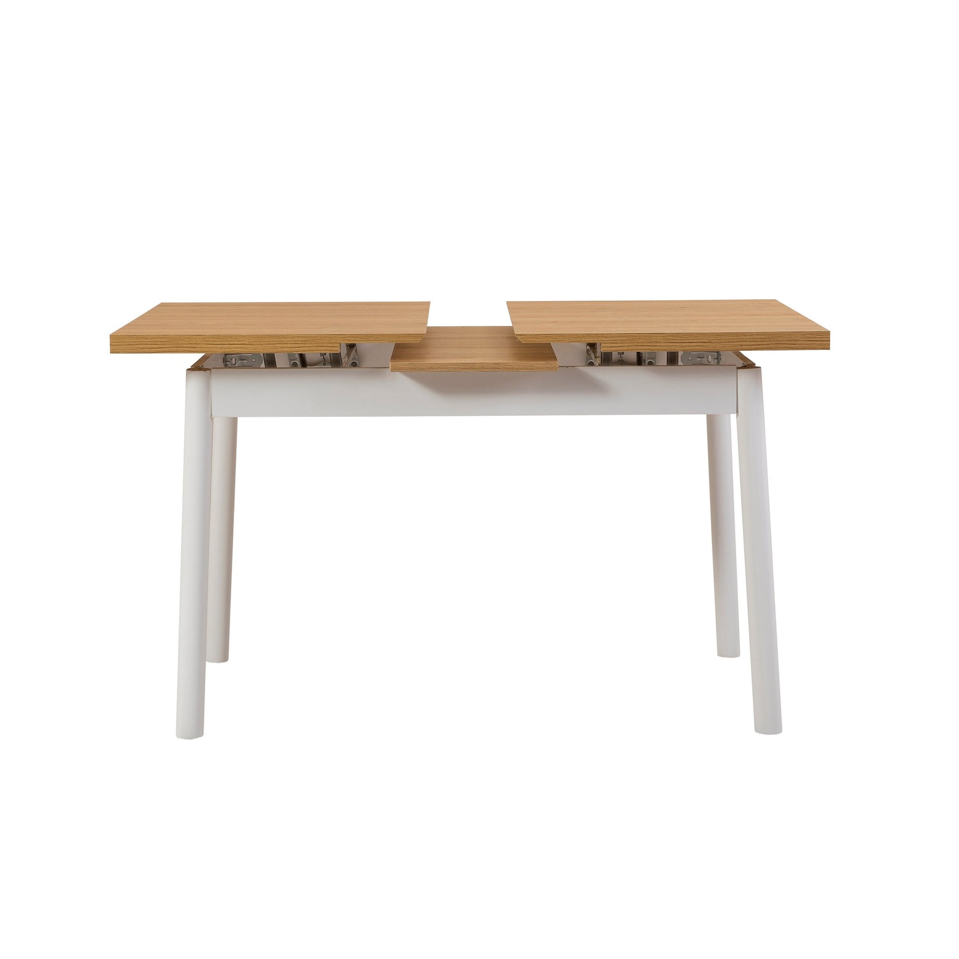 Conjunto de mesa de jantar extensível e cadeiras (5 peças), branco, 120-153 x 75 x 77 cm | Cadeiras 100% revestidas em melamina, couro sintético, pernas elegantes em madeira de faia