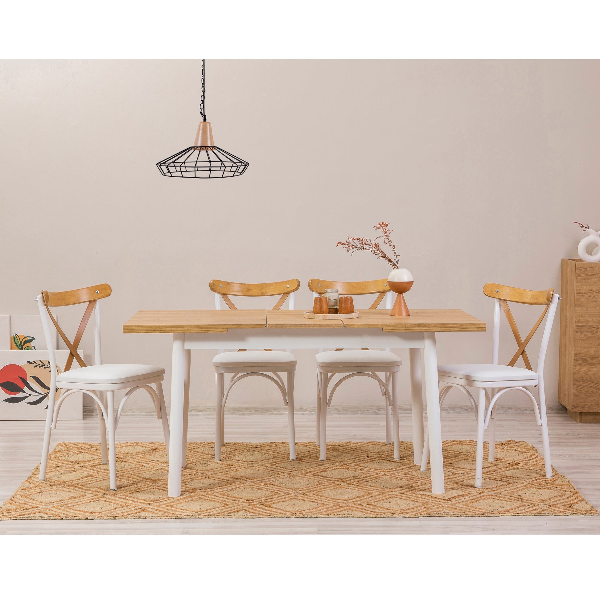 Faça de cada refeição uma ocasião especial com o nosso elegante e versátil conjunto de mesa de jantar e cadeiras extensível. Fabricado com amor e atenção aos detalhes, este conjunto foi concebido para criar memórias duradouras com os seus entes queridos.