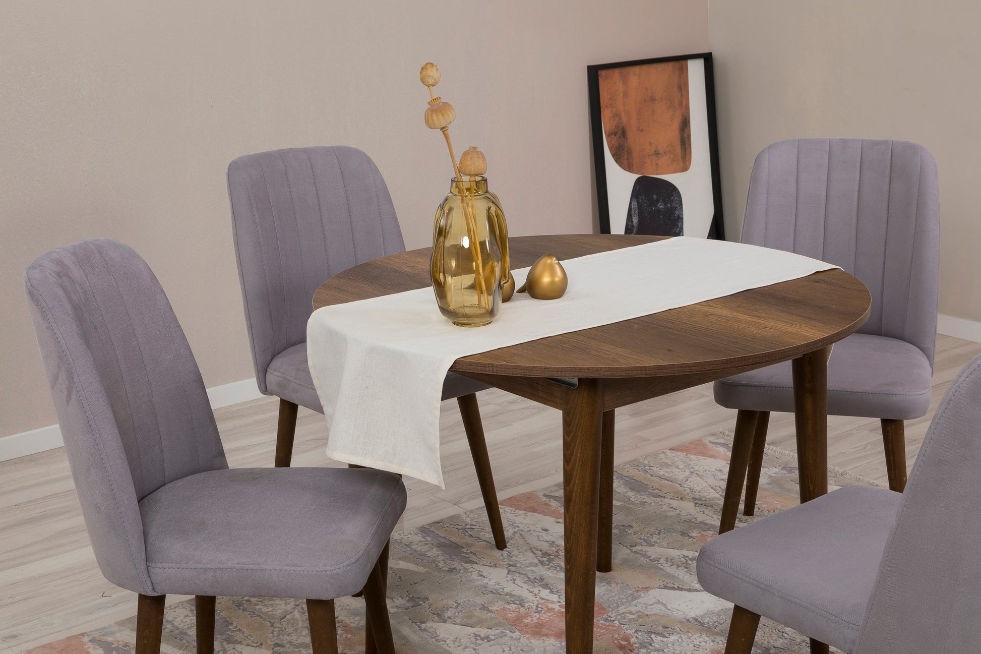 Conjunto de mesa de jantar extensível e cadeiras (5 peças), nogueira e cinza, 100 cm (aberto: 139 cm) | 100% revestido em melamina, 18 mm de espessura | Elegante e funcional para refeições modernas