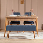 Conjunto de mesa de jantar extensível e cadeiras (4 peças) – 129-163 x 80 x 75 cm – Pinho Atlântico e Azul Escuro – Tecido de Linho