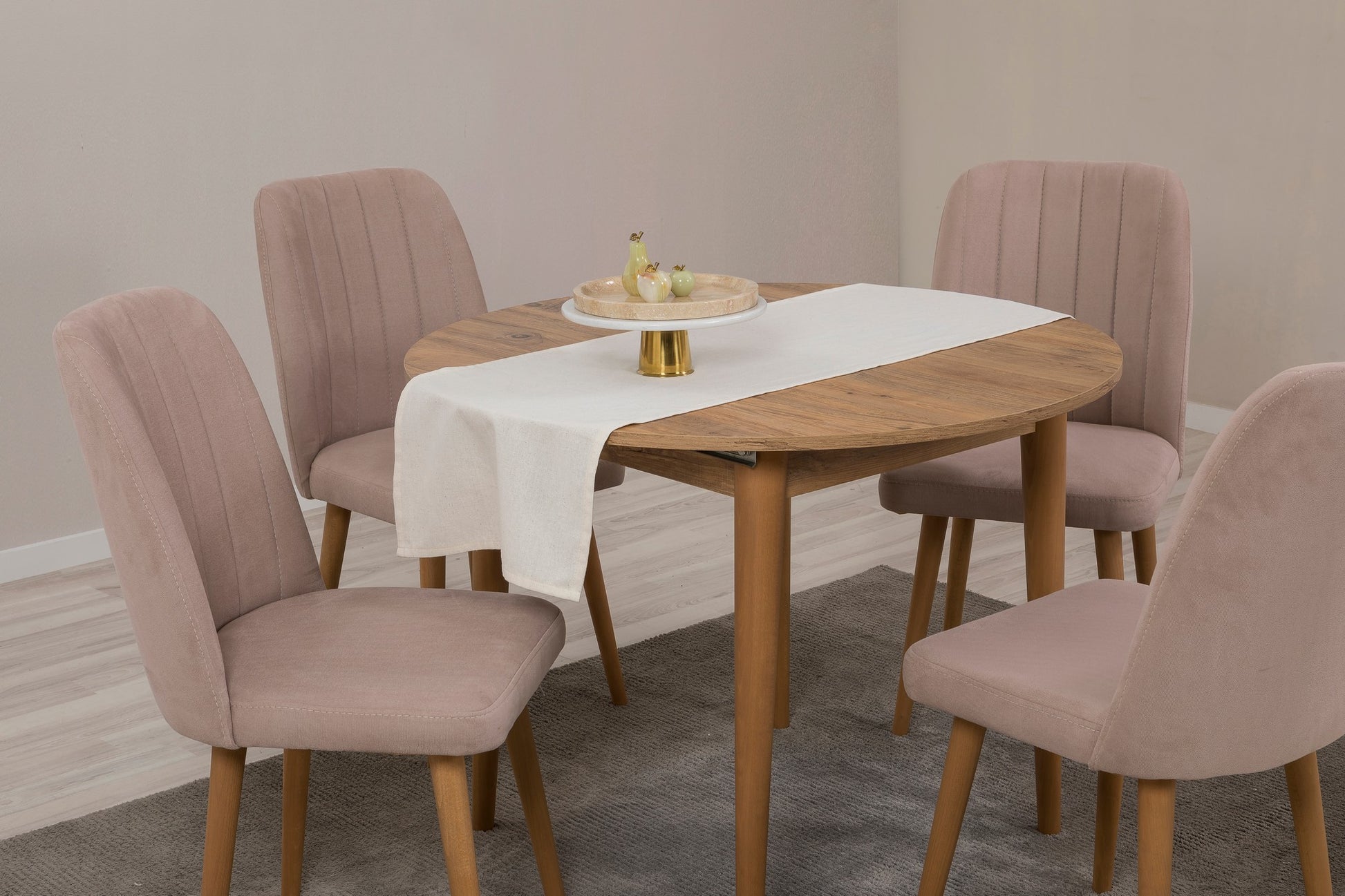 Conjunto de mesa de jantar extensível e cadeiras (5 peças), pinho atlântico e pedra, 100 cm (aberto: 139 cm) | 100% revestido em melamina, 18 mm de espessura | Elegante e funcional para espaços de jantar modernos