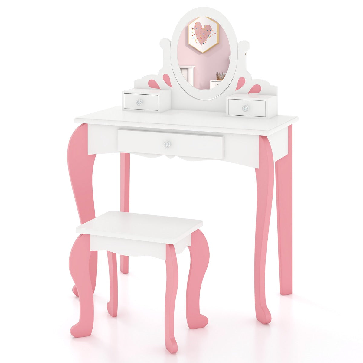 O nosso conjunto de mesa de toucador amigável para crianças foi concebido para inspirar a criatividade e o estilo do teu pequeno. O espelho rotativo de 360° proporciona uma reflexão clara para diversão com maquilhagem e penteados. A sua funcionalidade de duplo uso transforma-o num prático escritório de escrita, promovendo o jogo e as atividades ao mesmo tempo para as crianças. O conjunto inclui um banco estável a condizer e 3 gavetas de arrumação para organizar joias, cosméticos e acessórios de forma ordenada. A segurança é primordial com os cantos arredondados e o espelho acrílico inquebrável, tornando este num espaço seguro e confortável para as crianças desfrutarem.
