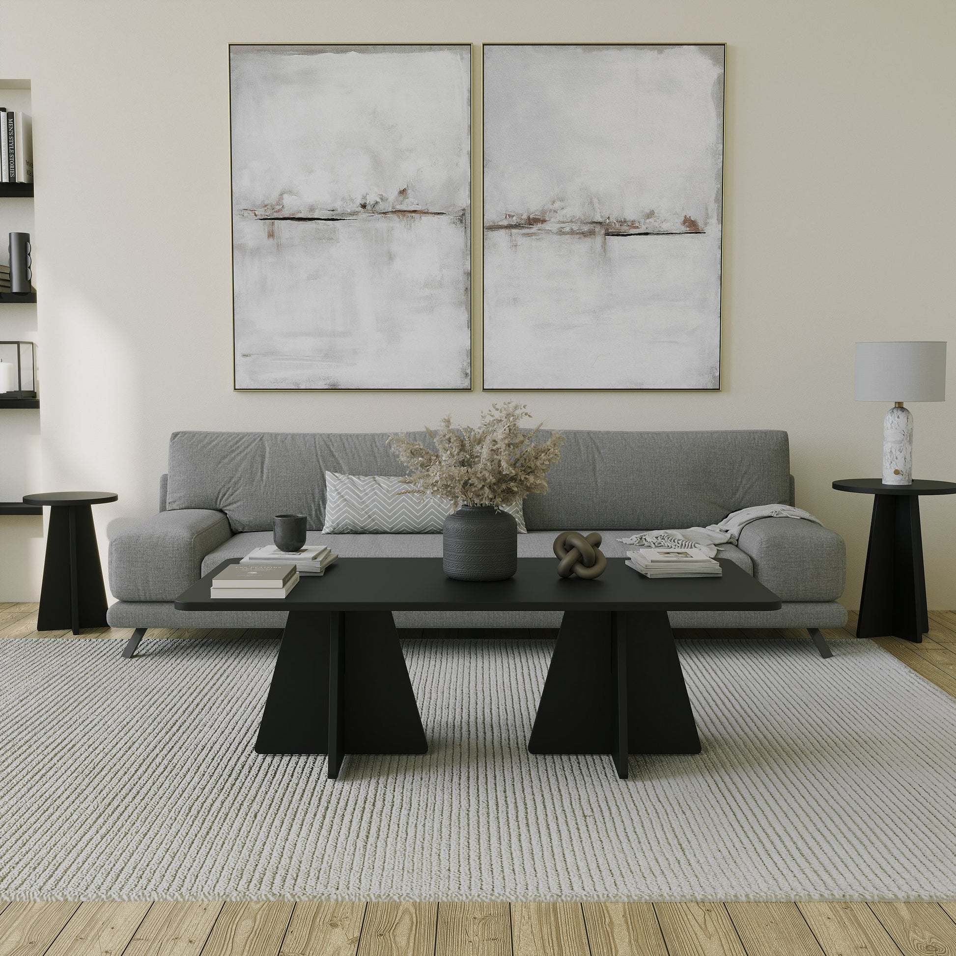 Conjunto de mesa de centro elegante em preto (4 peças) | Painel de partículas 100% revestido em melamina, 18 mm de espessura | Perfeito para salas de estar modernas e espaços de entretenimento