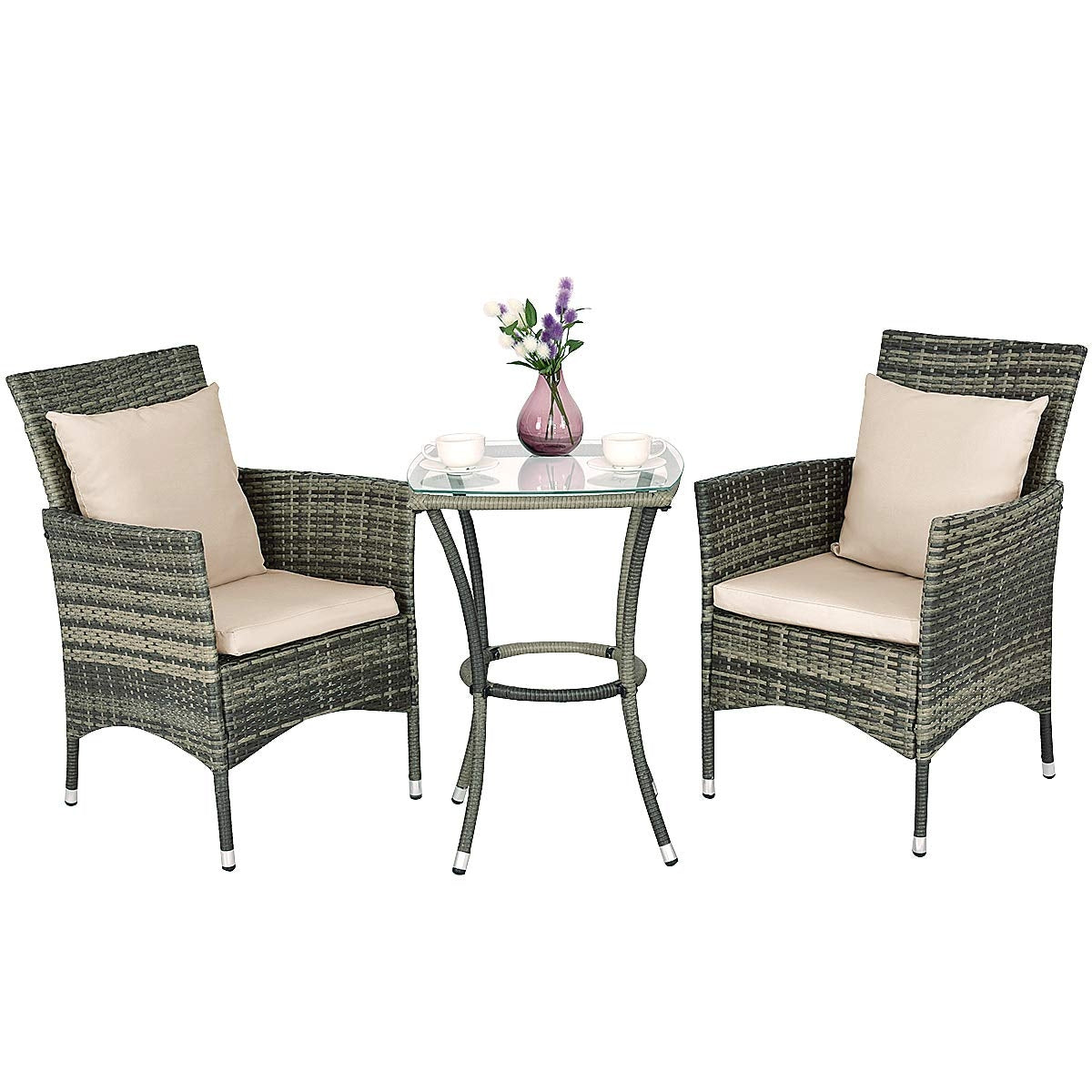 - Ideal para jardim e terraço - O conjunto de móveis de vime é composto por 2 cadeiras e 1 mesa com tampo de vidro, oferecendo uma área de estar elegante para o seu jardim. Poderá desfrutar de momentos de lazer com a família e amigos.