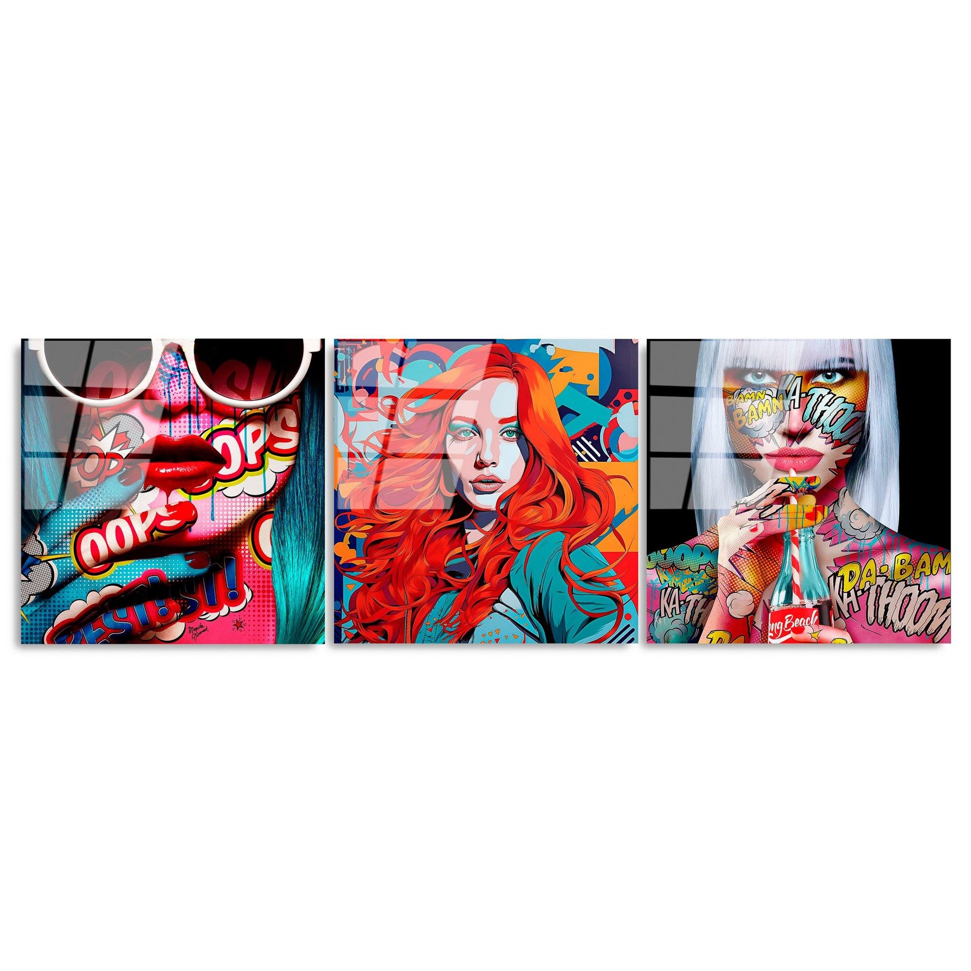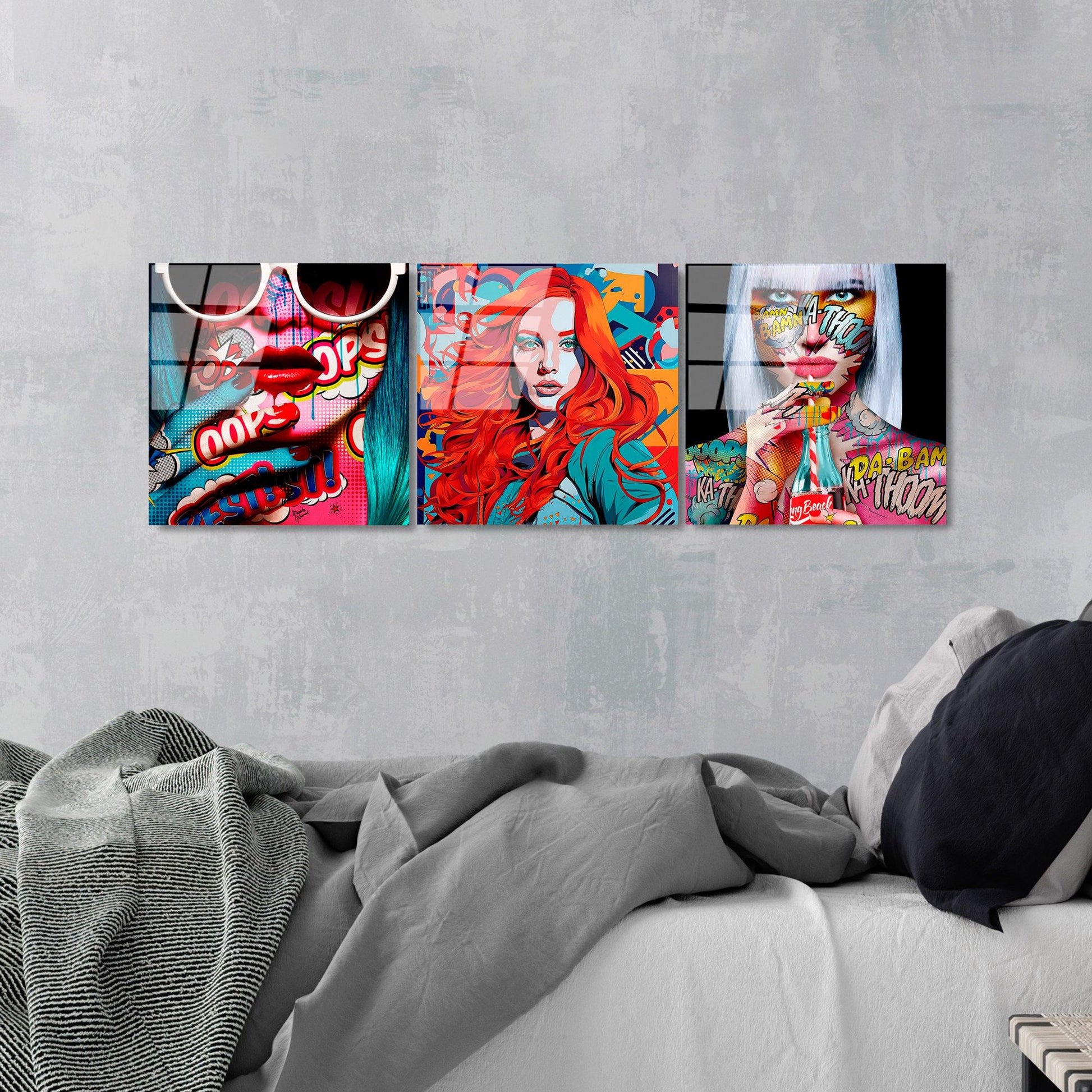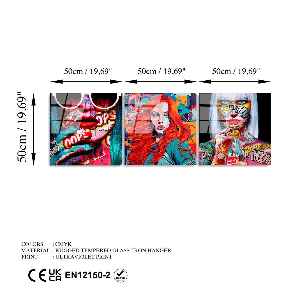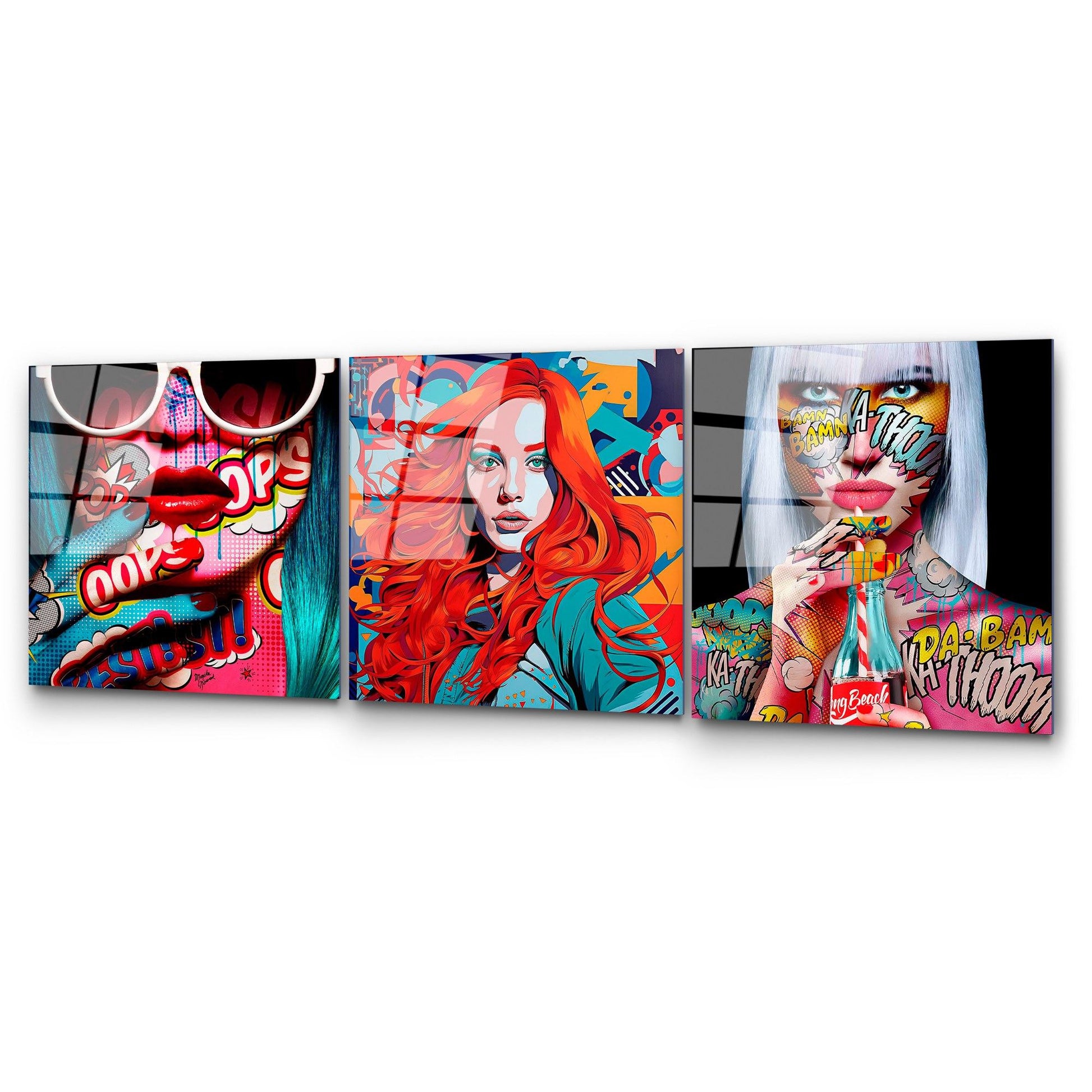 Conjunto elegante de arte de parede em vidro temperado (3 peças), 50 x 50 cm | 100% vidro temperado, 4 mm de espessura | Impressão traseira resistente ao desbotamento, perfeita para decoração de casa
