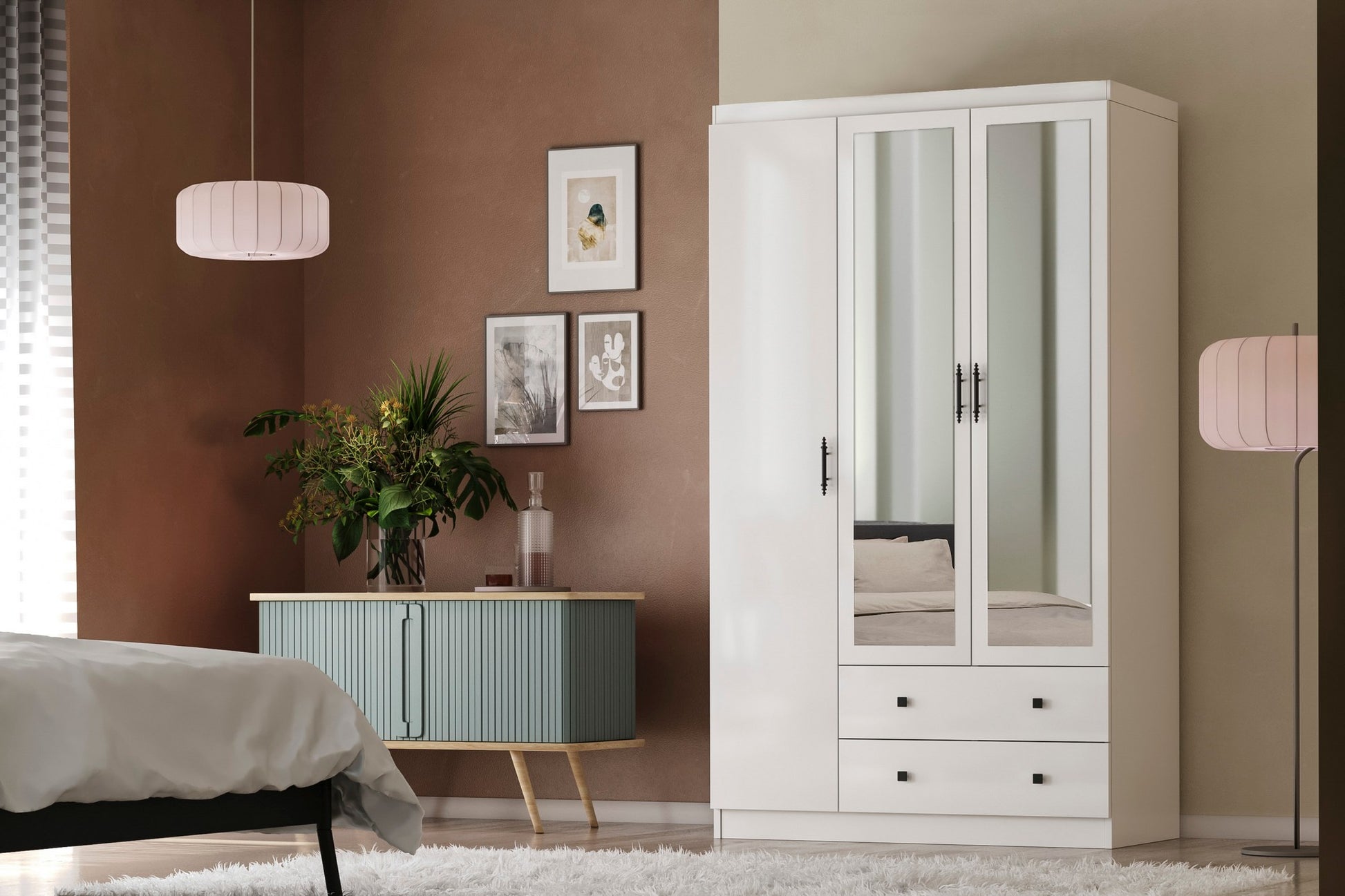 - Tamanho do roupeiro: Largura: 105 cm, Altura: 186 cm, Profundidade: 50 cm