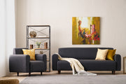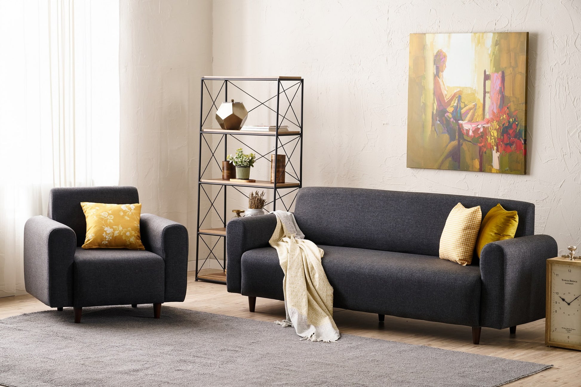 O sofá de 3 lugares e o sofá de 1 lugar oferecem um amplo espaço para si e para os seus entes queridos relaxarem e descontraírem. A espuma de 28 dns garante uma experiência de assento suave e confortável, enquanto as pernas de plástico proporcionam estabilidade e apoio. A elegante cor antracite dá um toque moderno à sua decoração, tornando-a uma adição versátil a qualquer casa.