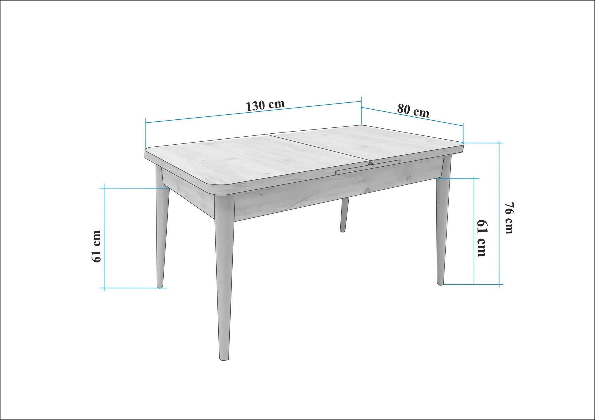 - Tamanho da Mesa de Jantar: Largura: 130 cm, Altura: 76 cm, Profundidade: 80 cm (1 Peça)