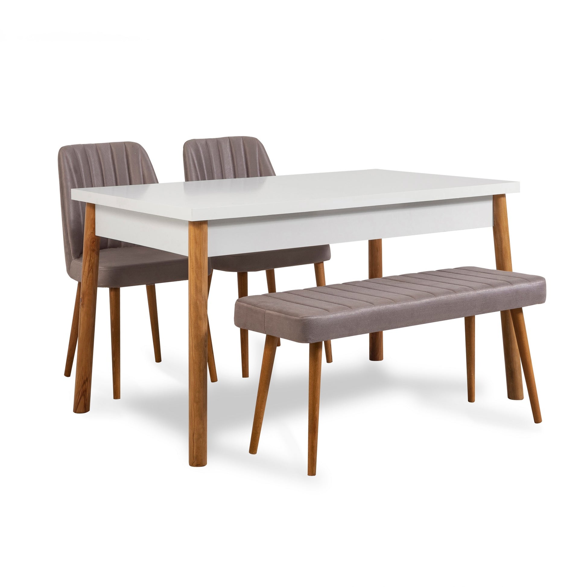Conjunto de mesa e cadeiras escandinavo (4 peças) – 120x75x77 cm – Pinho Atlântico, branco e cinza – Melamina e metal