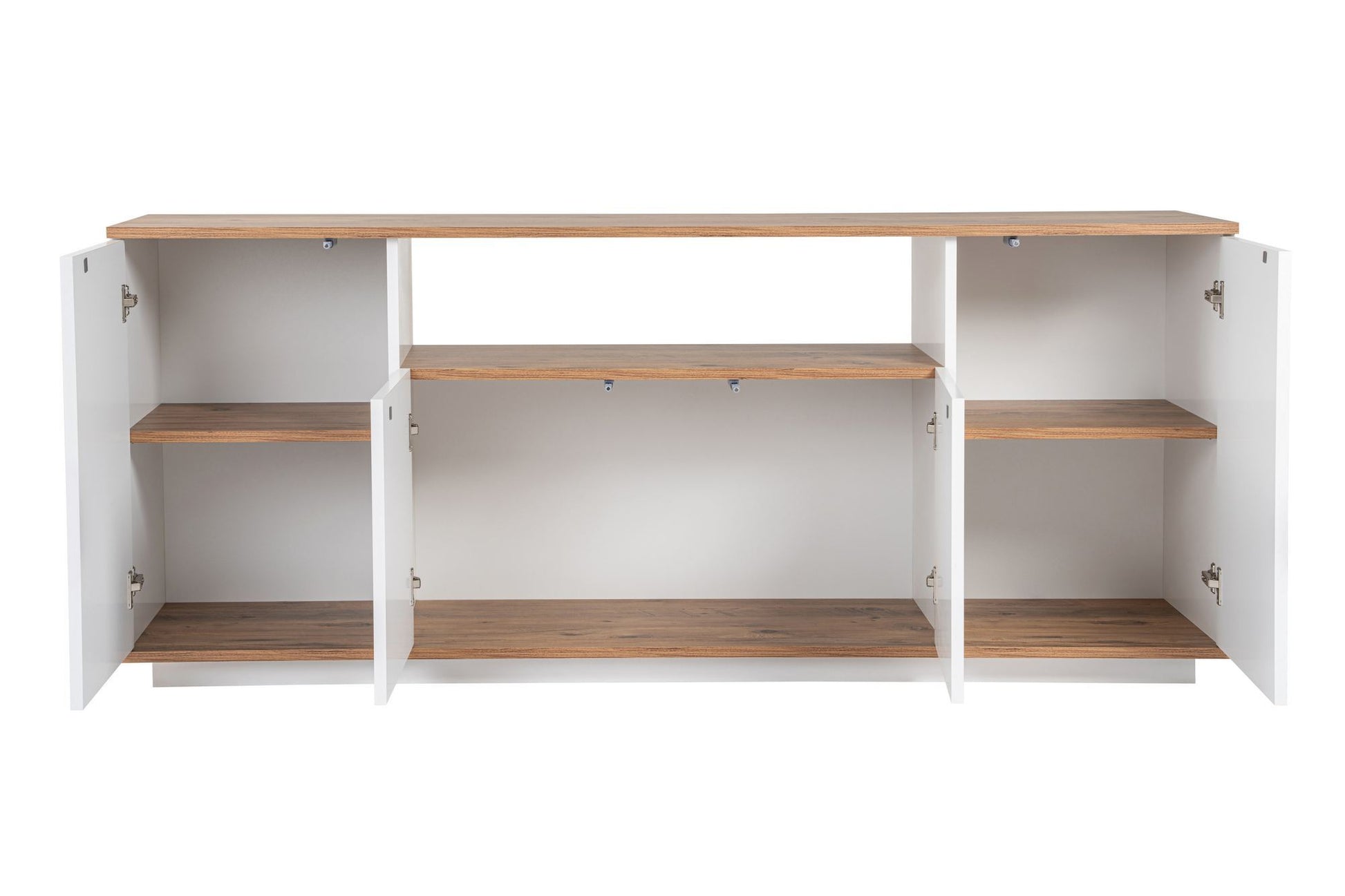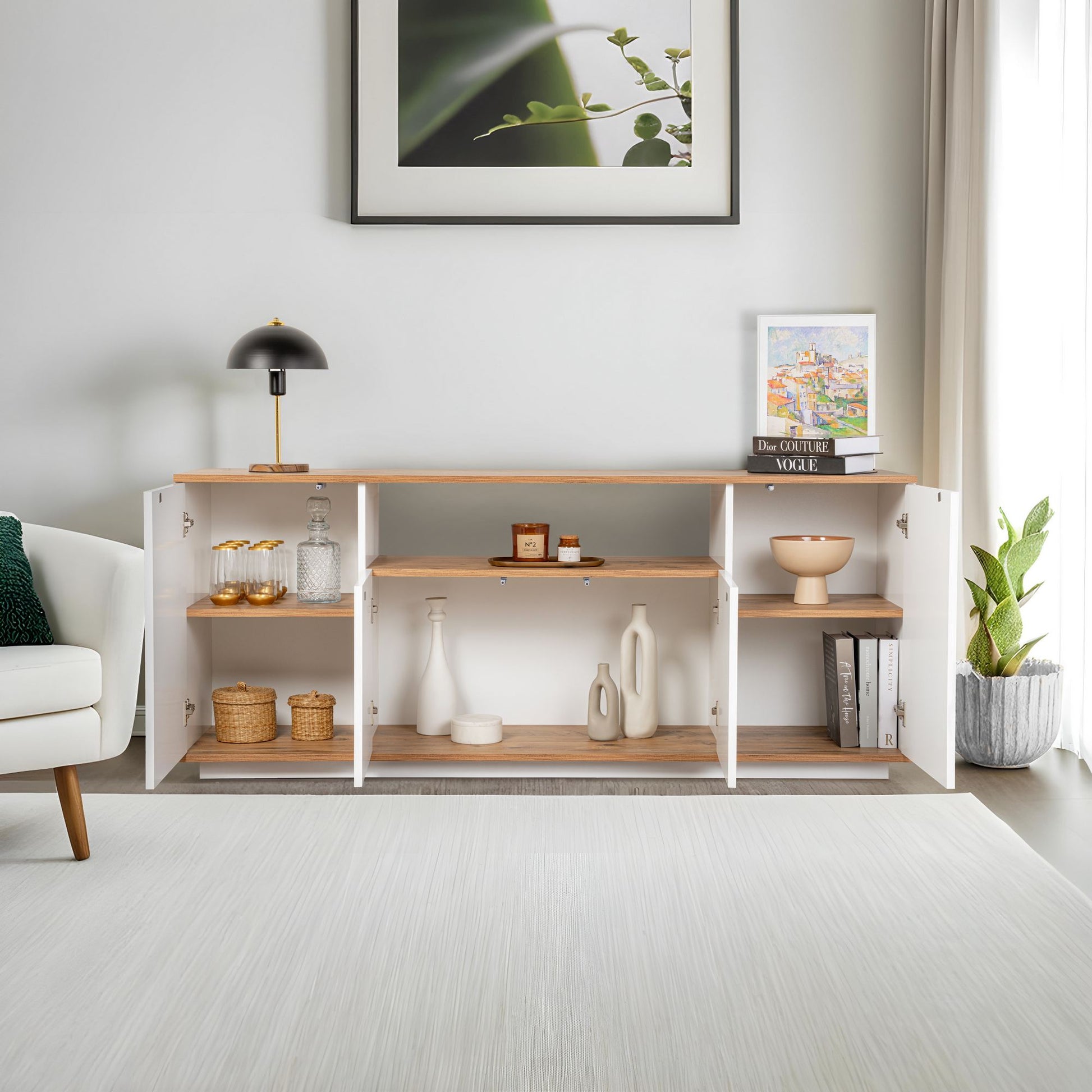 Aparador Elegante, Branco e Pinho Atlântico, 180 x 75 x 44,5 cm | Painel de Partículas 100% Revestido com Melamina, 18 mm de Espessura | Perfeito para Espaços Modernos