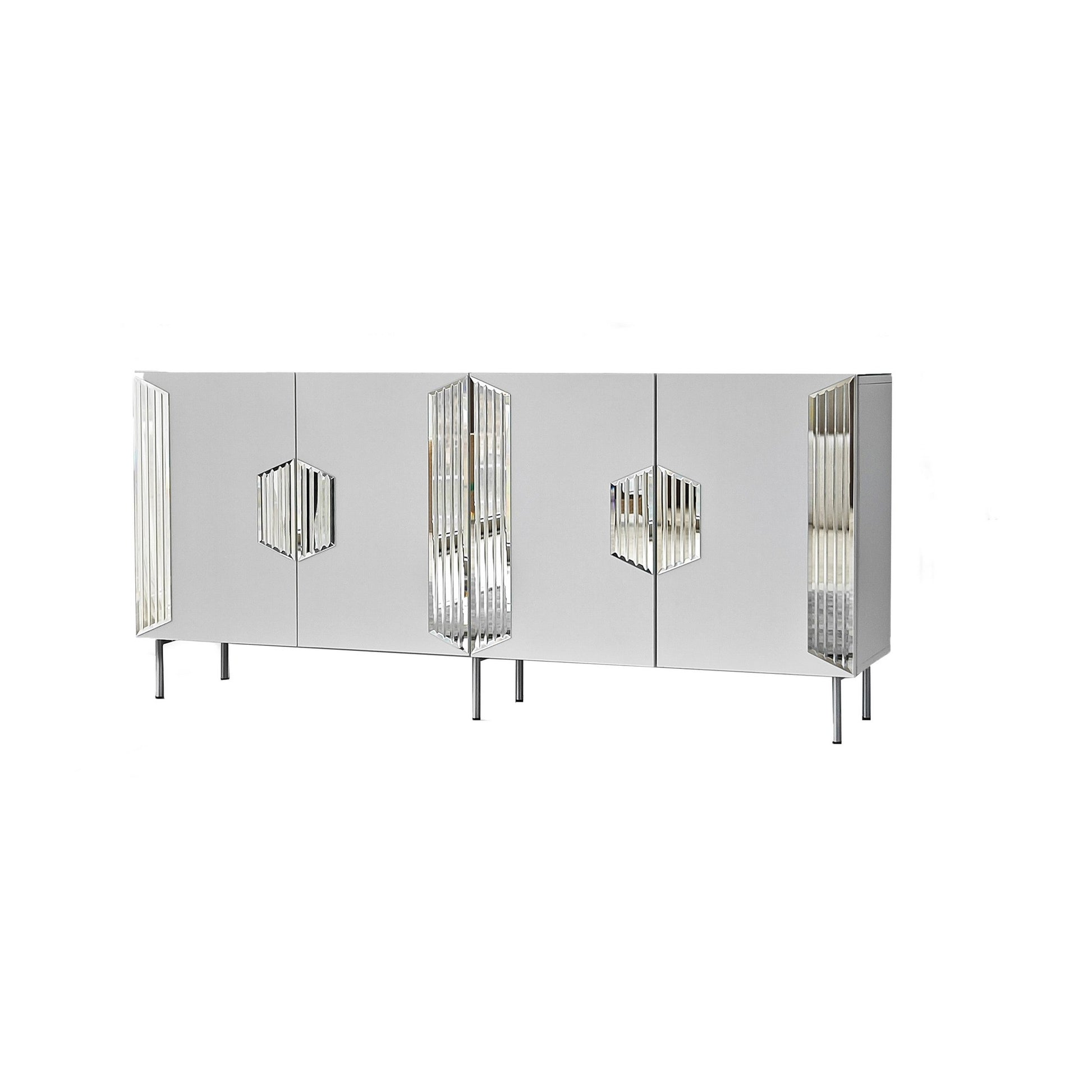 Aparador Elegante, Branco e Prateada, 180 x 80 x 40 cm | Painel de Partículas 100% Revestido em Melamina, 18 mm de Espessura | Armazenamento Elegante para Casas Modernos