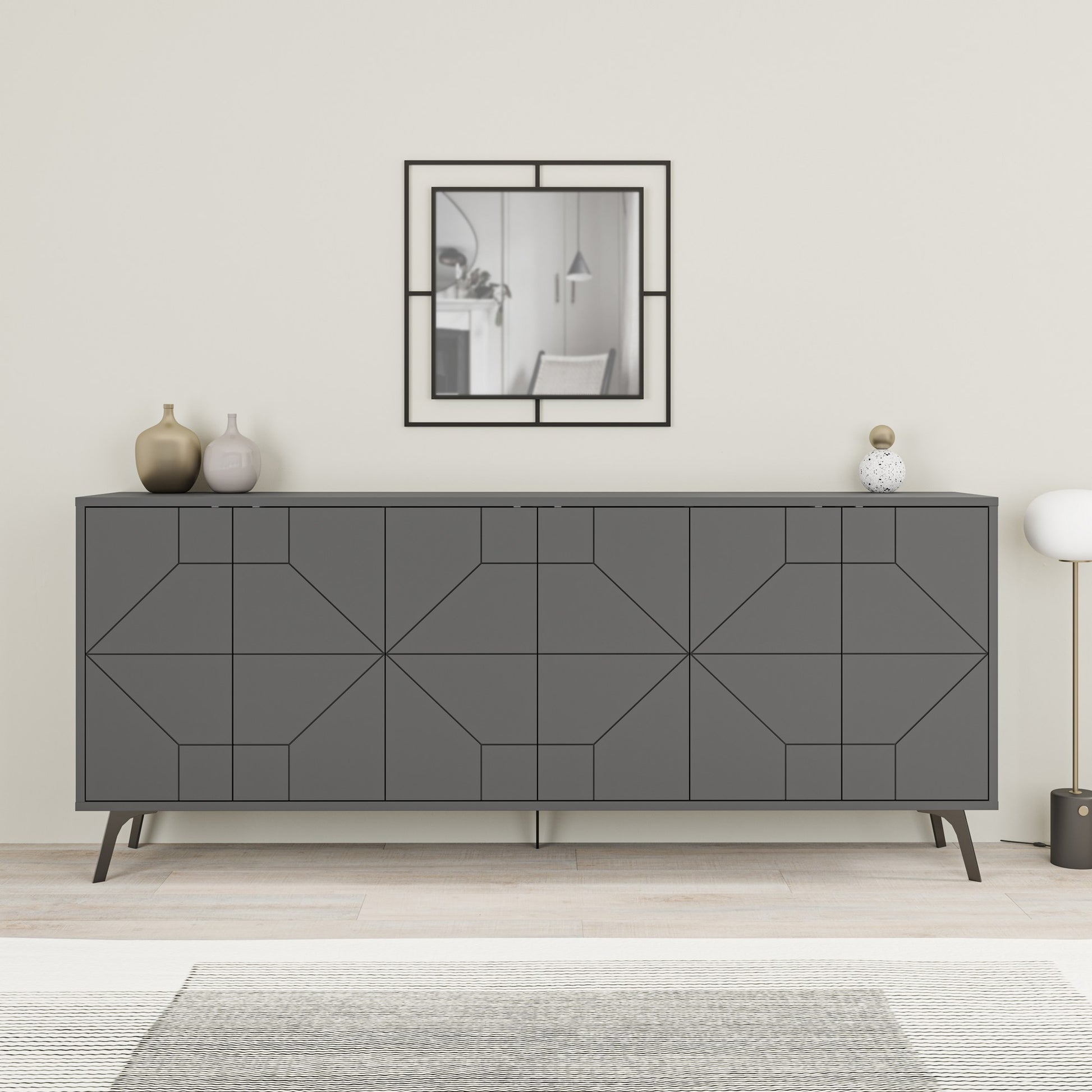 Aparador – 183,8 x 77,4 x 35 cm – Antracite – Painel de partículas revestido a melamina