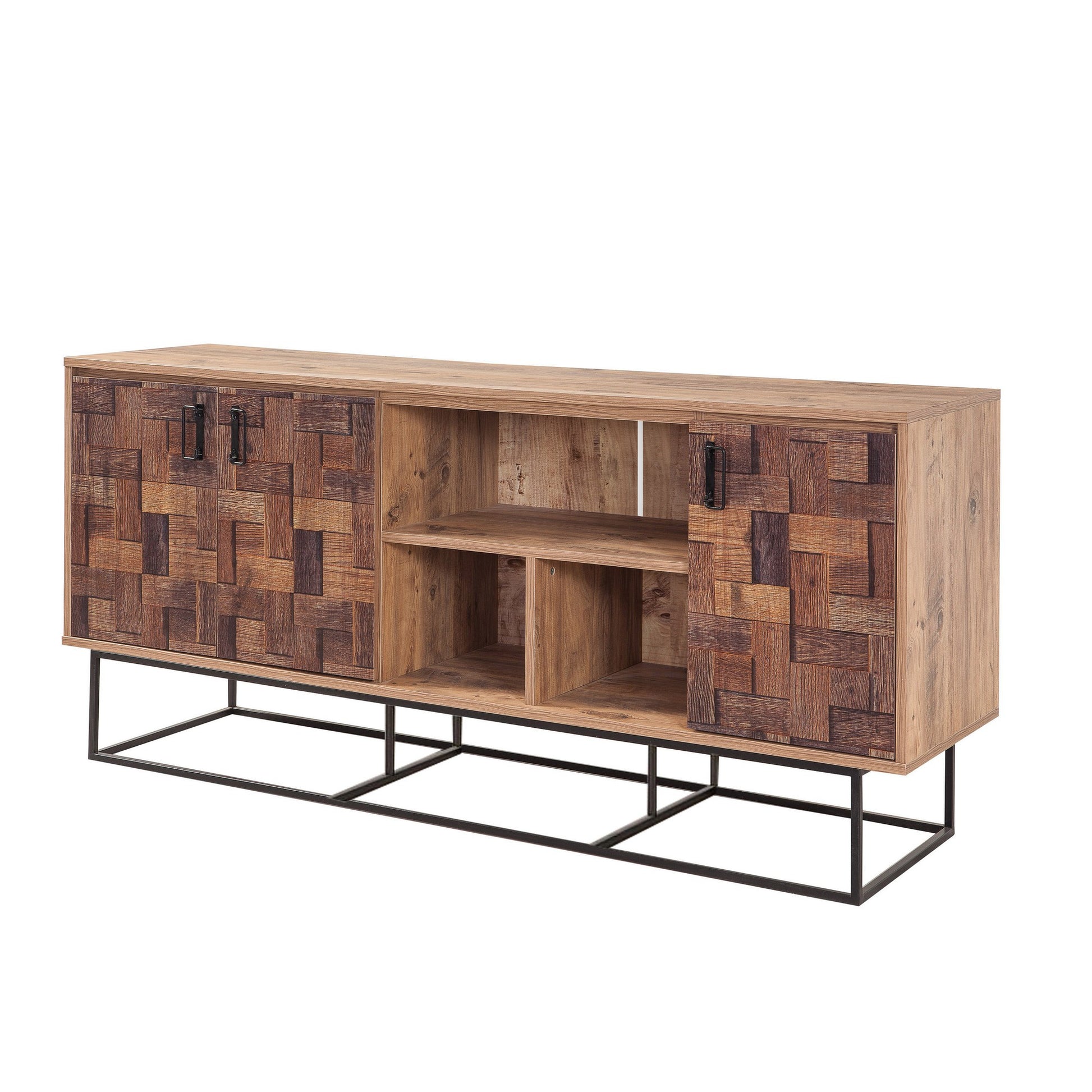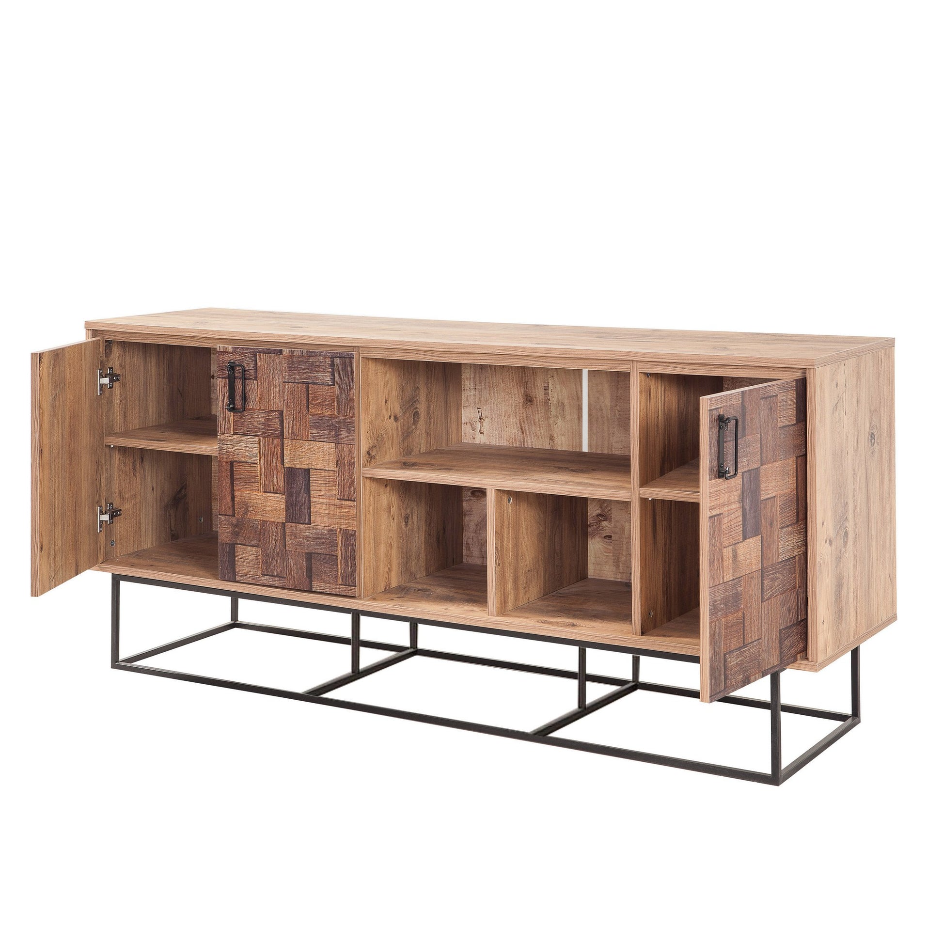 Aparador Moderno – 180 x 80 x 40 cm – Pinho Atlântico e Preto – Metal e Melamina