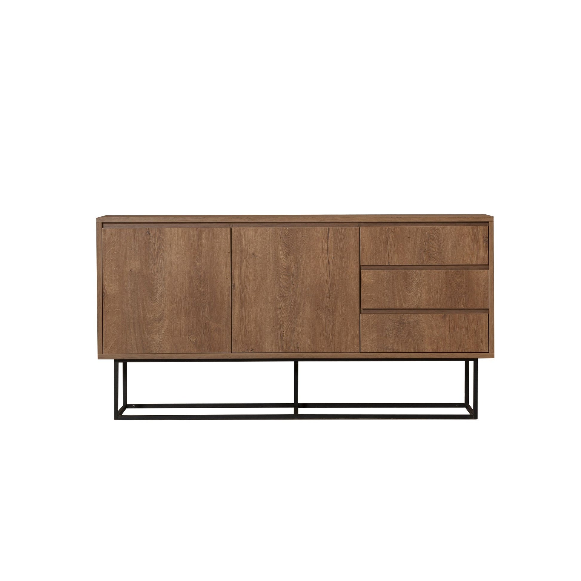 Aparador Moderno com 3 Gavetas e Prateleiras – 140 x 72 x 36 cm – Nogueira e Preto – Melamina e Metal