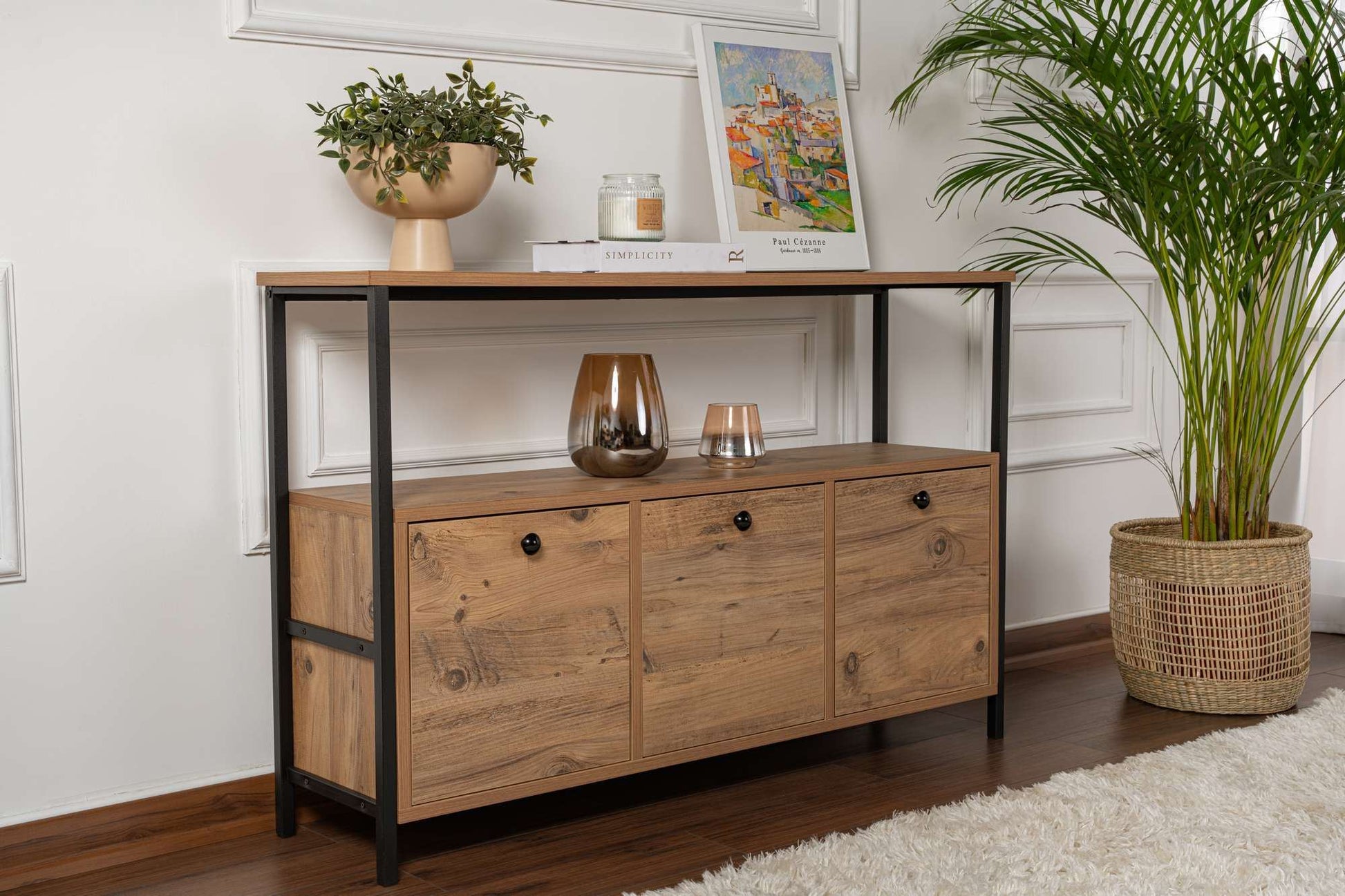 Aparador Elegante, Pinho Atlântico e Preto, 120 x 77 x 29,5 cm | Revestimento 100% Melamina, Pintura Eletrostática a Pó, Perfil de Metal Durável | Design Moderno para Casa e Escritório