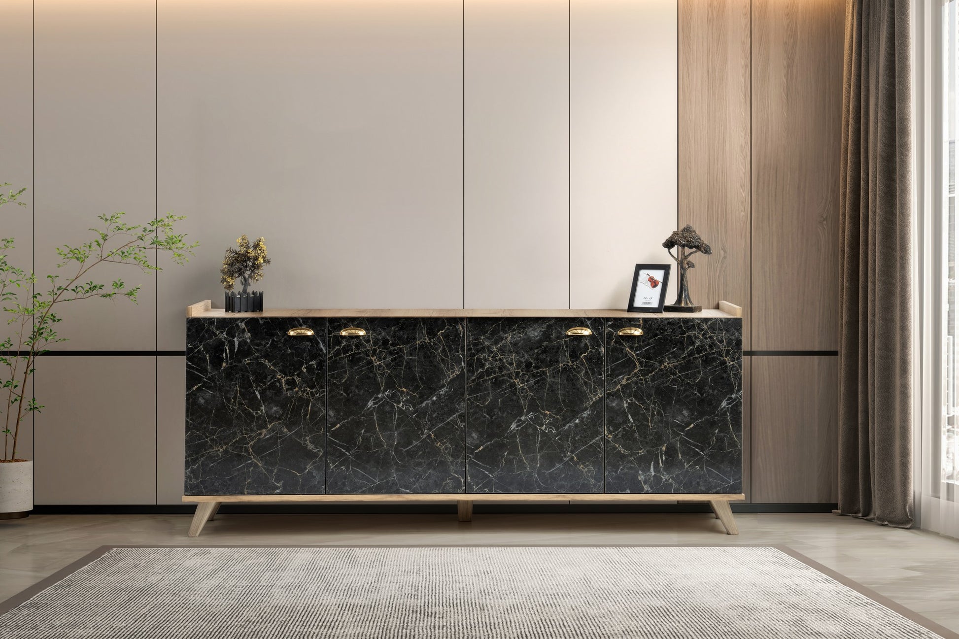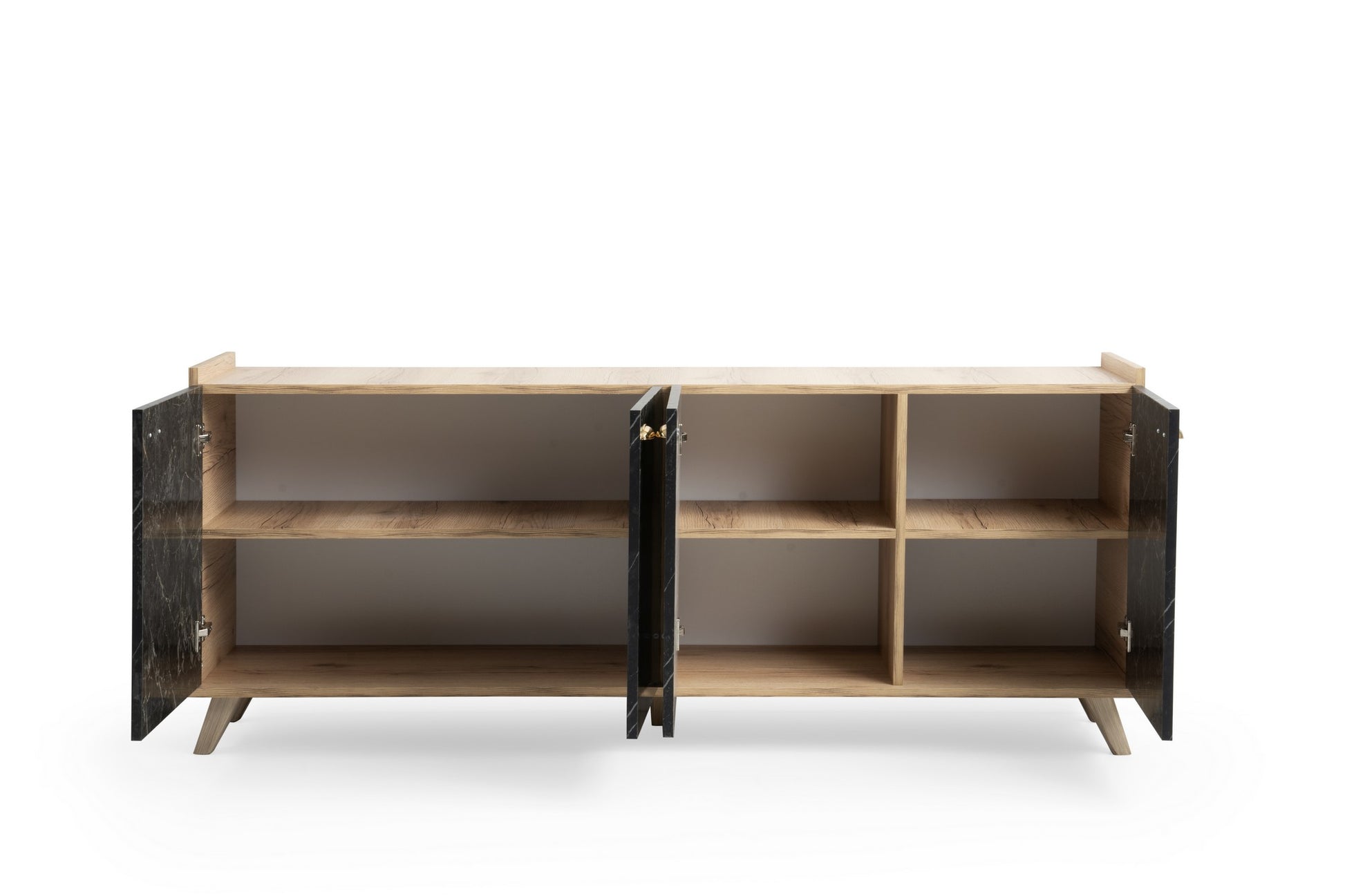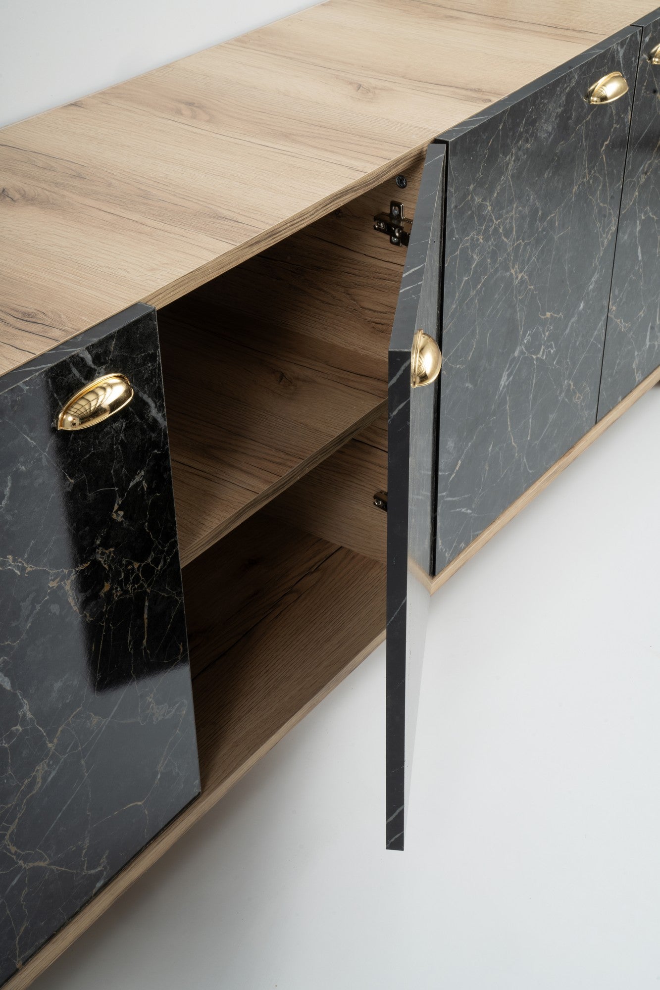 Aparador com Acabamento em Mármore – 180 cm – Carvalho e Mármore – Painéis de Partículas 100% Revestidos em Melamina