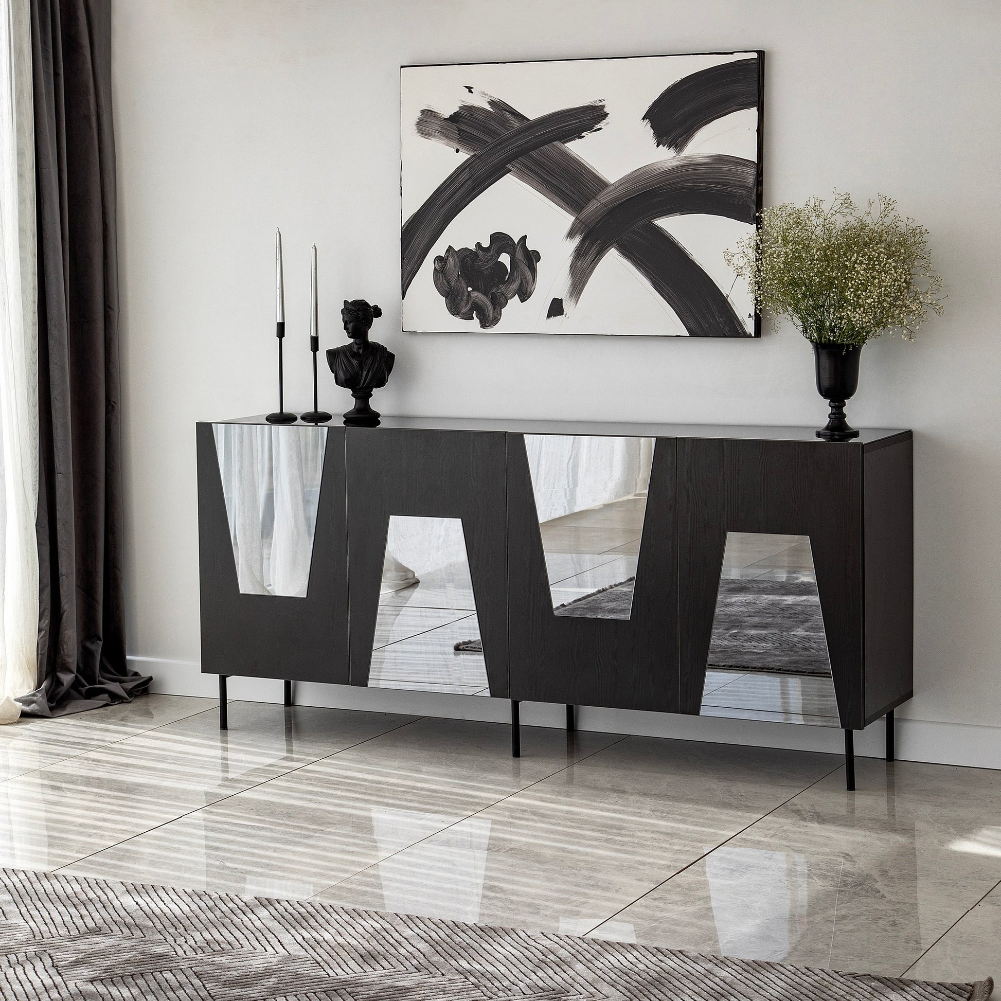 Aparador Elegante, Preta e Fumê, 180 x 80 x 40 cm | Painel de Partículas 100% Revestido em Melamina, 18 mm de Espessura | Design Moderno para Casa e Escritório