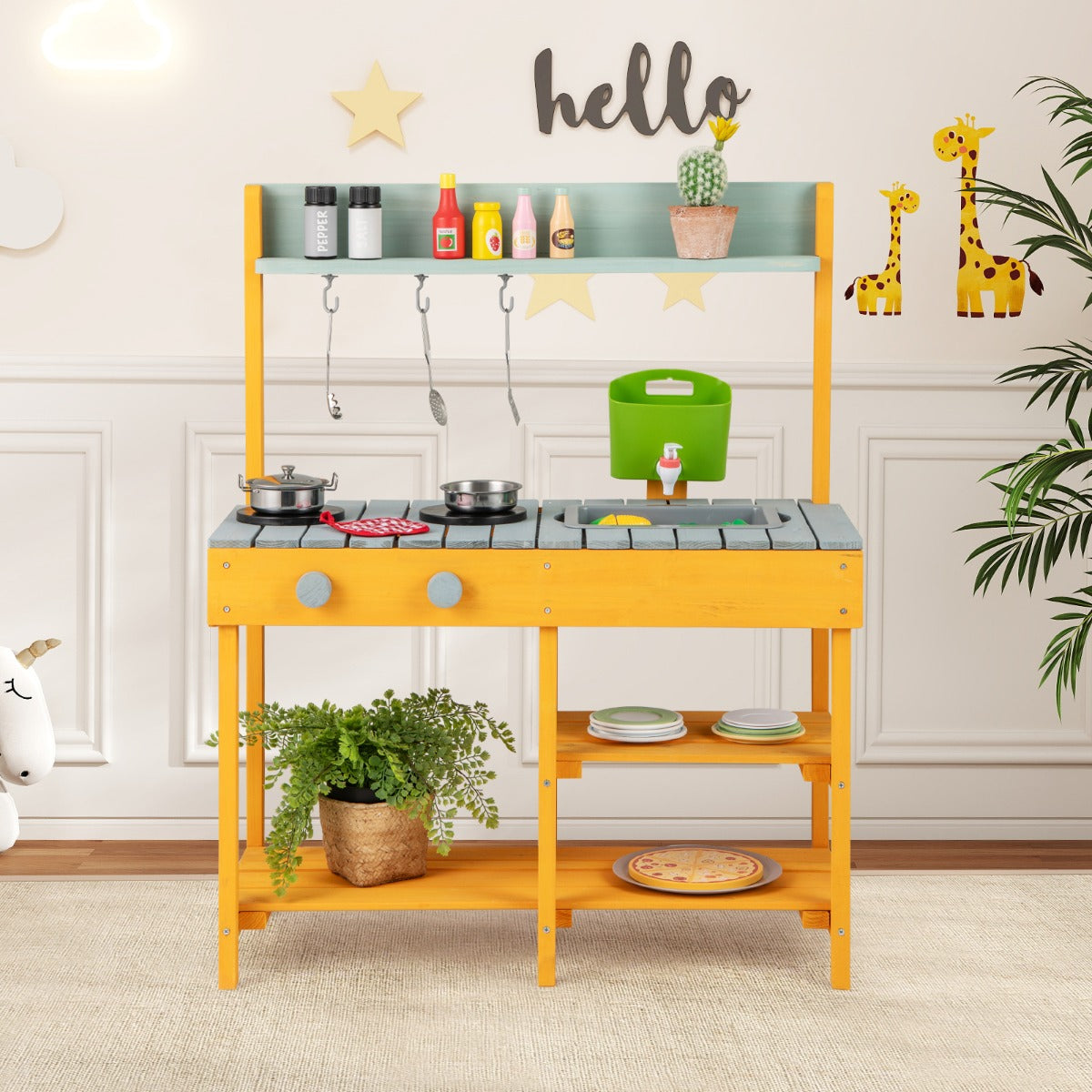Cozinha de Brincar Infantil em Madeira Conjunto de Cozinha com Pia de Água Torneira Realista e Lavatório Removível para Crianças de 3+ Anos - Laranja