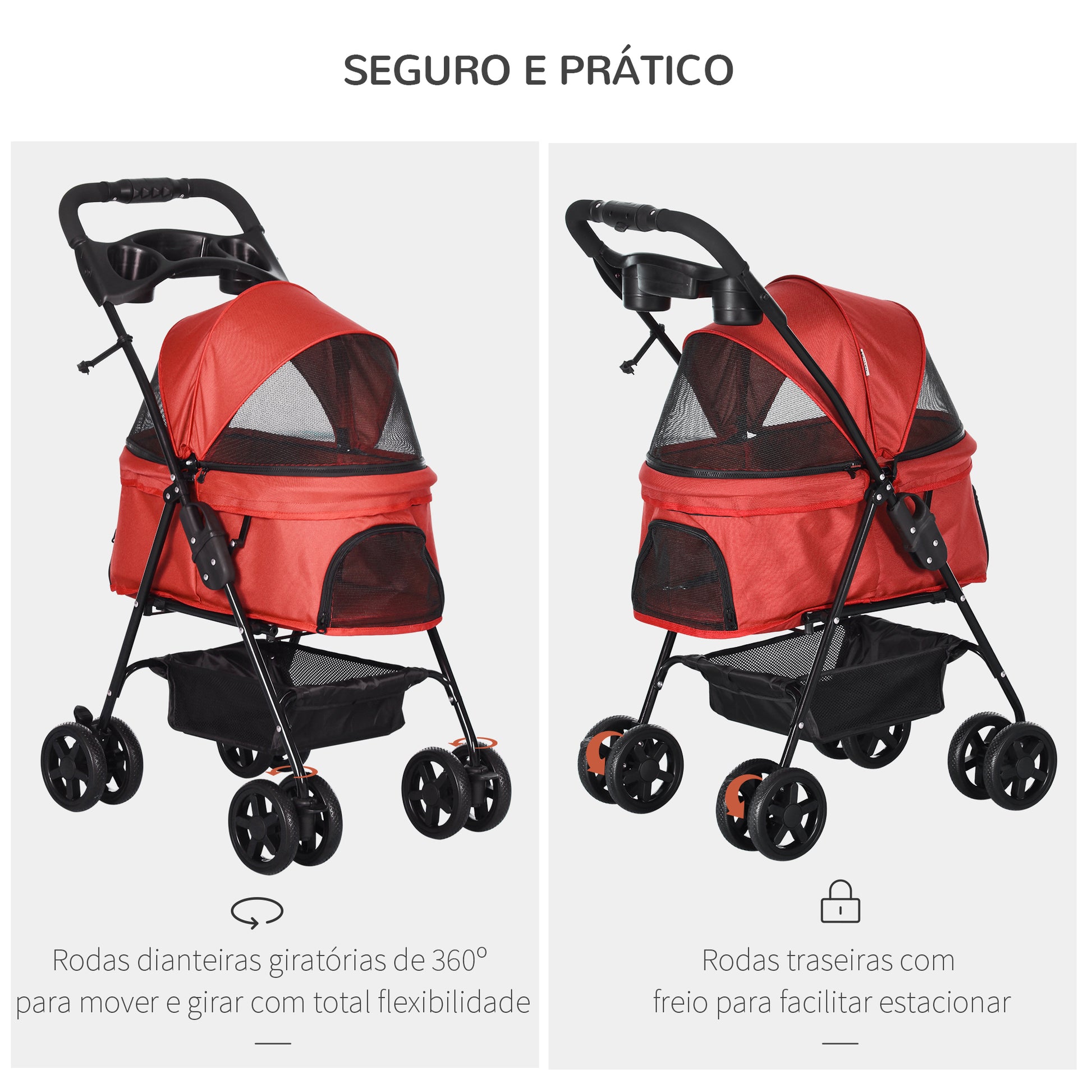 Transforme os seus passeios com o seu animal de estimação em momentos mais práticos e confortáveis com este carrinho dobrável de alta qualidade.