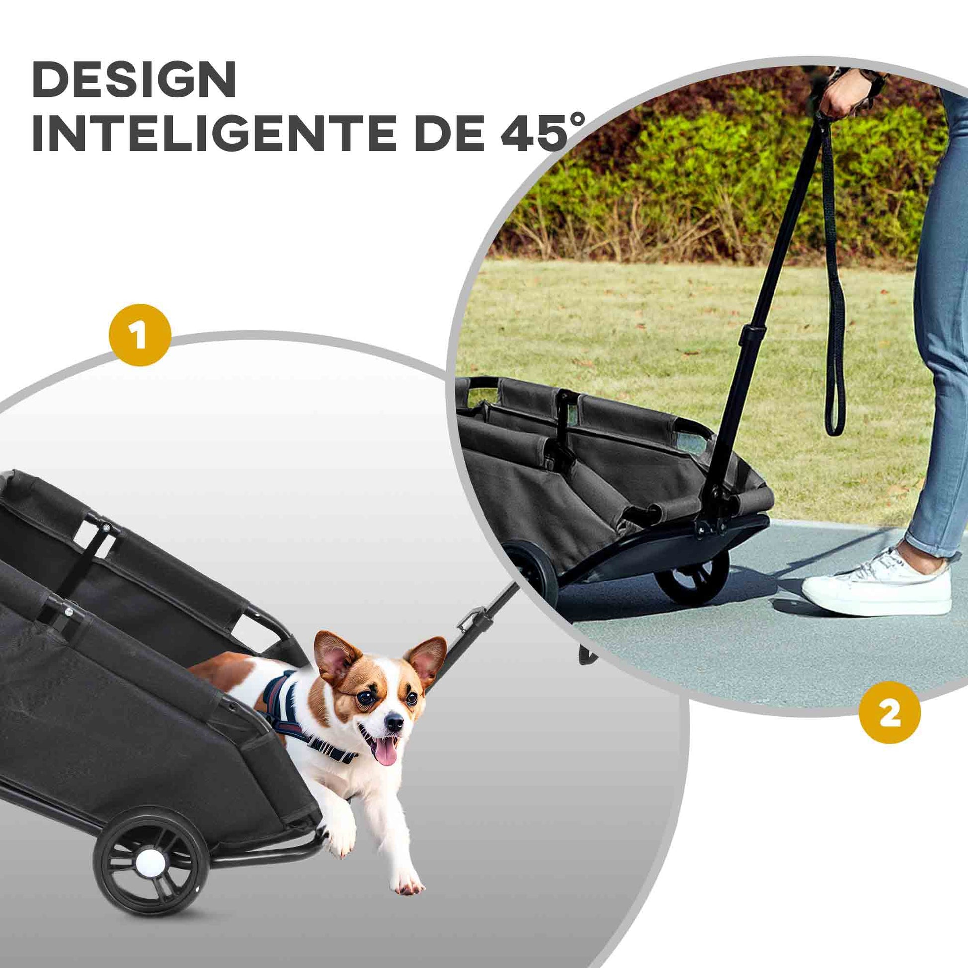 Proporcione passeios confortáveis e seguros ao seu cão com este carrinho dobrável em tecido Oxford 600D resistente e estrutura de aço.