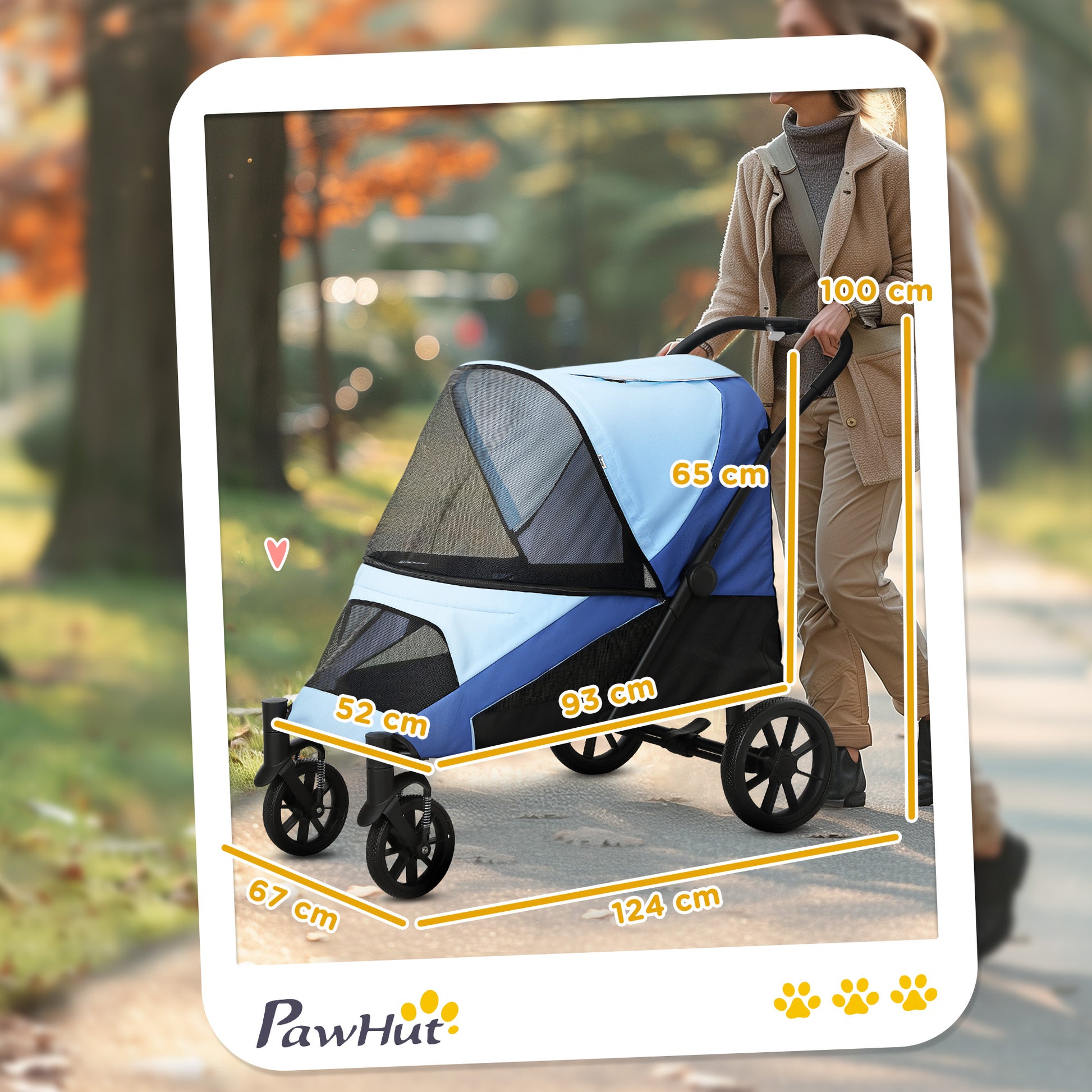 Carrinho para Cães Dobrável com Rodas Grandes 124x67x100 cm - Azul