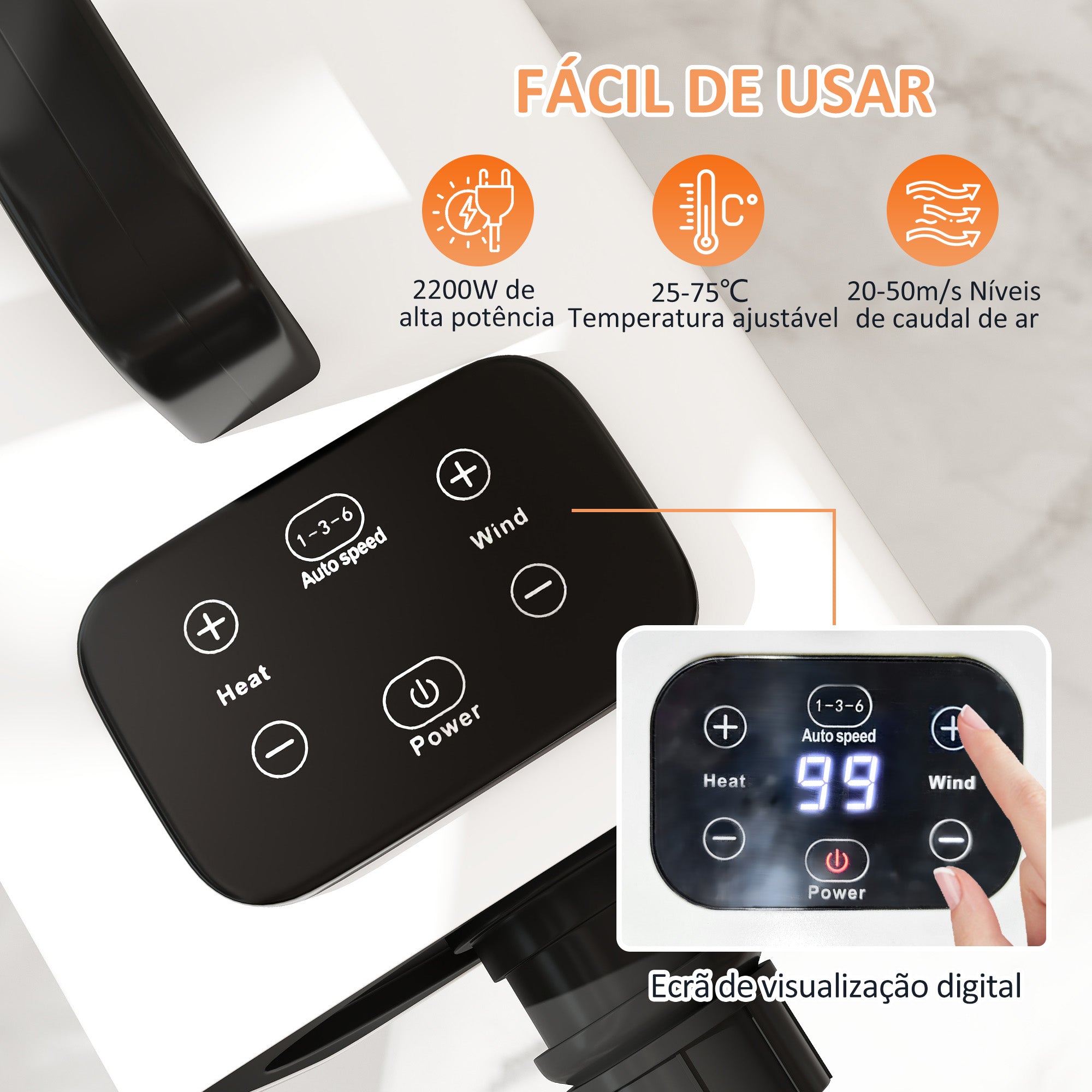 - Outras especificações: Voltagem: 220V-240V, 10A | Comprimento do cabo de alimentação: 202 cm | Velocidade do vento: 20-50 m/s | Decibéis máximos: 70 dB