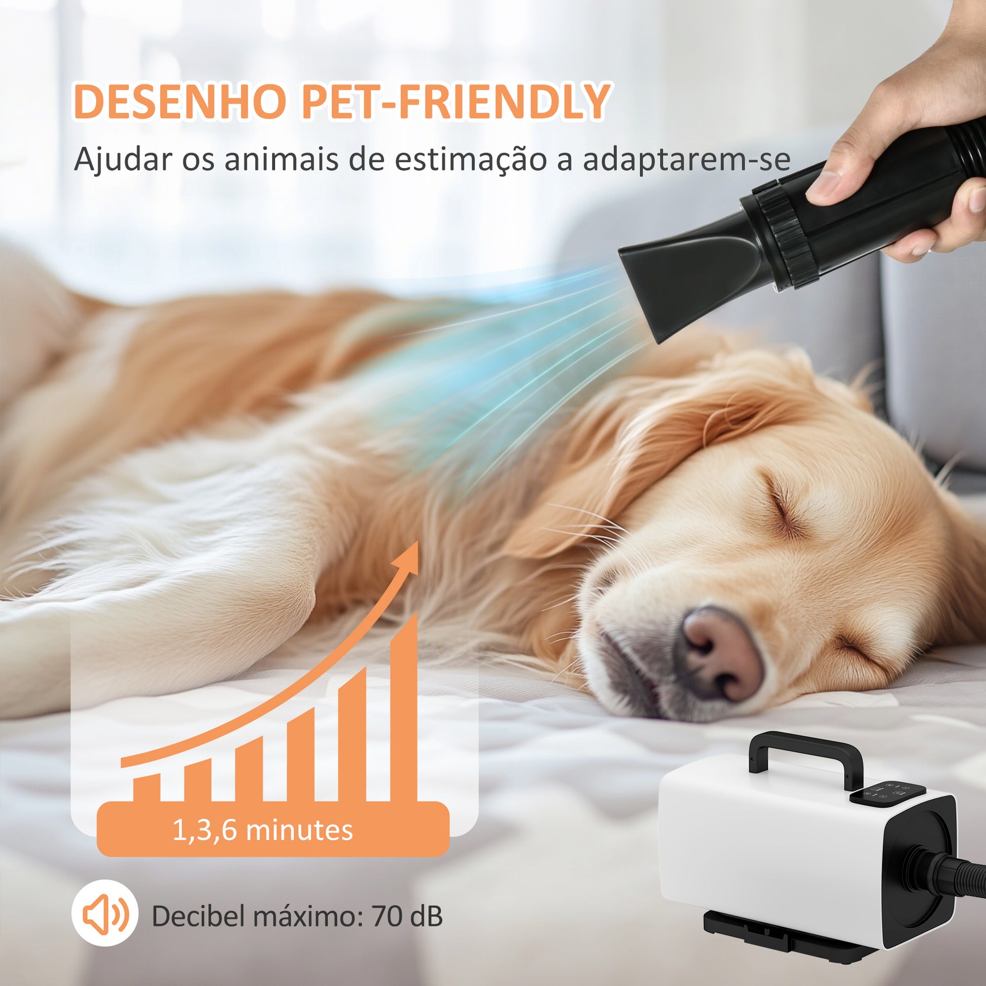 Secador de Cães 2200W Branco 34x16x25 cm - Velocidade e Temperatura Ajustáveis