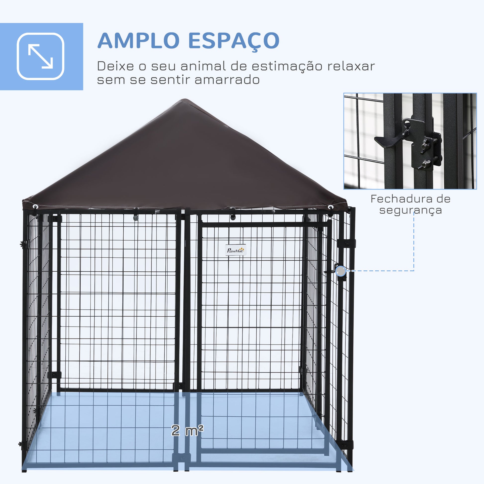 Aproveite este parque para animais de estimação versátil, com toldo protetor resistente às intempéries, garantindo o conforto do seu pet em todas as estações do ano.