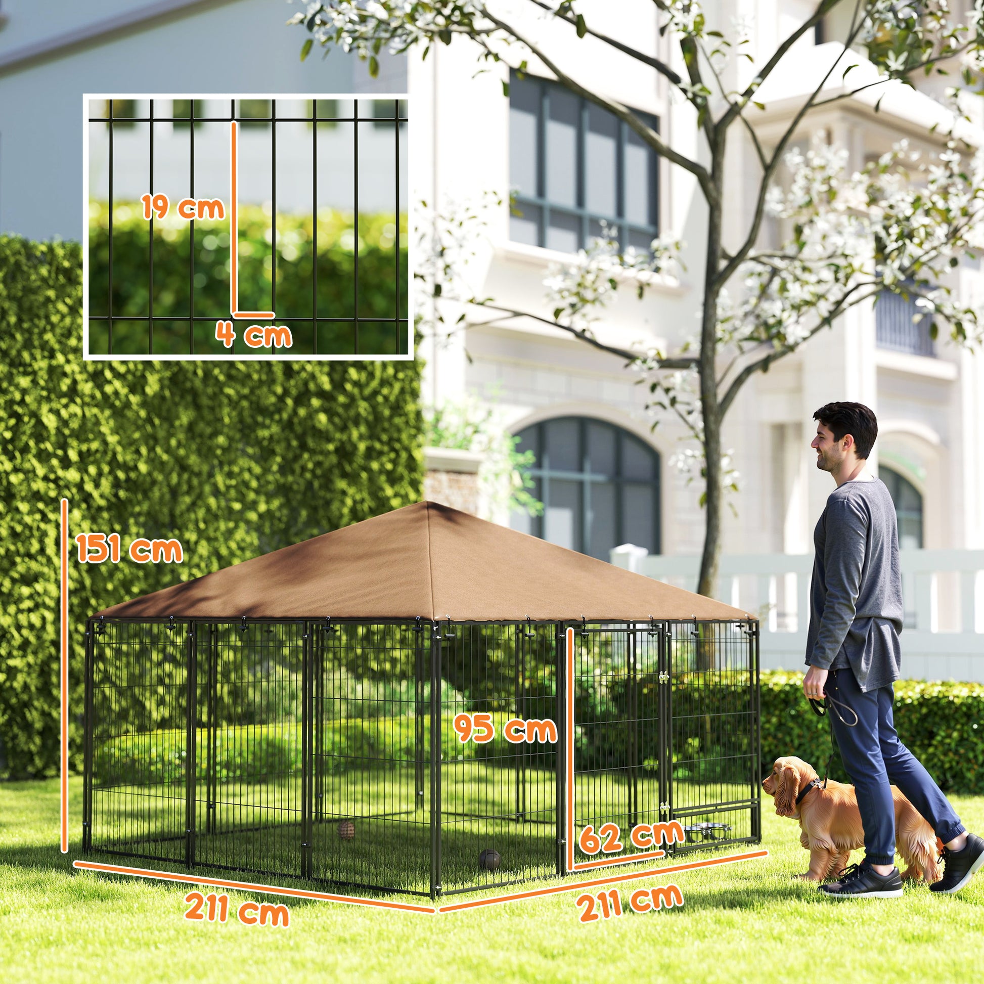 Parque para Cães com Toldo – 211x211x151 cm – Preto e Marrom – Metal