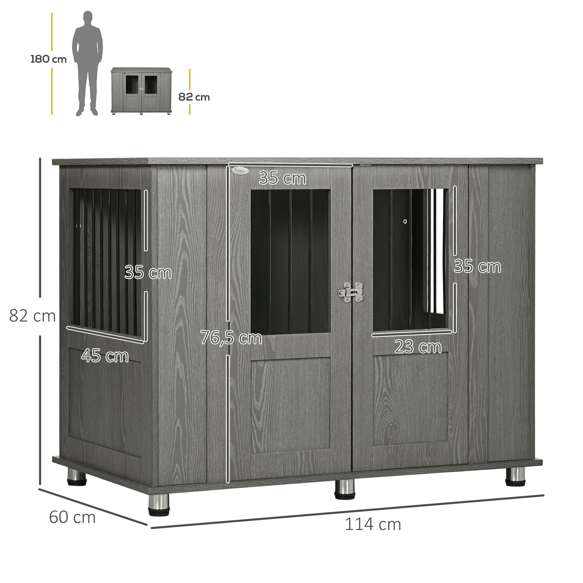 Proporcione ao seu cão um espaço seguro e confortável com esta gaiola desmontável versátil e funcional, que também serve como mesa auxiliar. Com medidas de 114x60x82 cm e cor cinza, é ideal para cães grandes.
