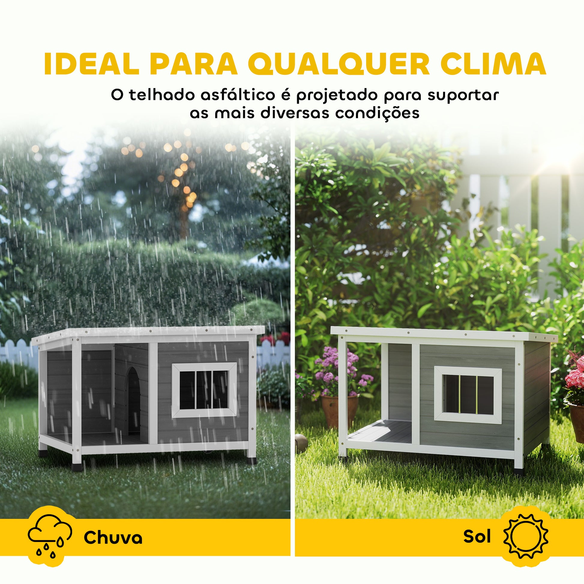 Proporcione ao seu cão um espaço confortável com a Casa para Cães de Madeira em tom cinza, ideal para interior e exterior.