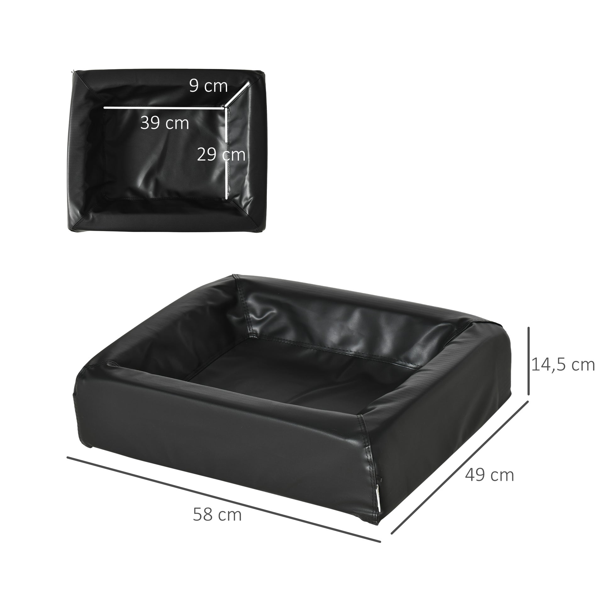 Esta cama estofada em couro PU preto é a solução perfeita para proporcionar conforto aos seus animais de estimação. Com medidas de 58x49x14,5 cm, é ideal para cães e gatos de pequeno porte.