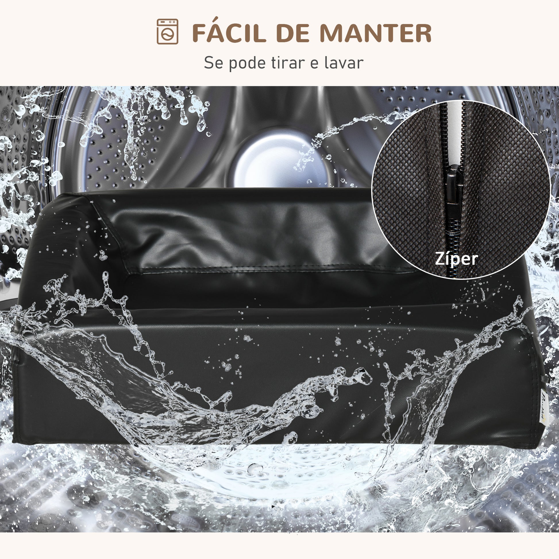 Cama Estofada em Couro PU Preto 58x49x14,5 cm para Cães e Gatos