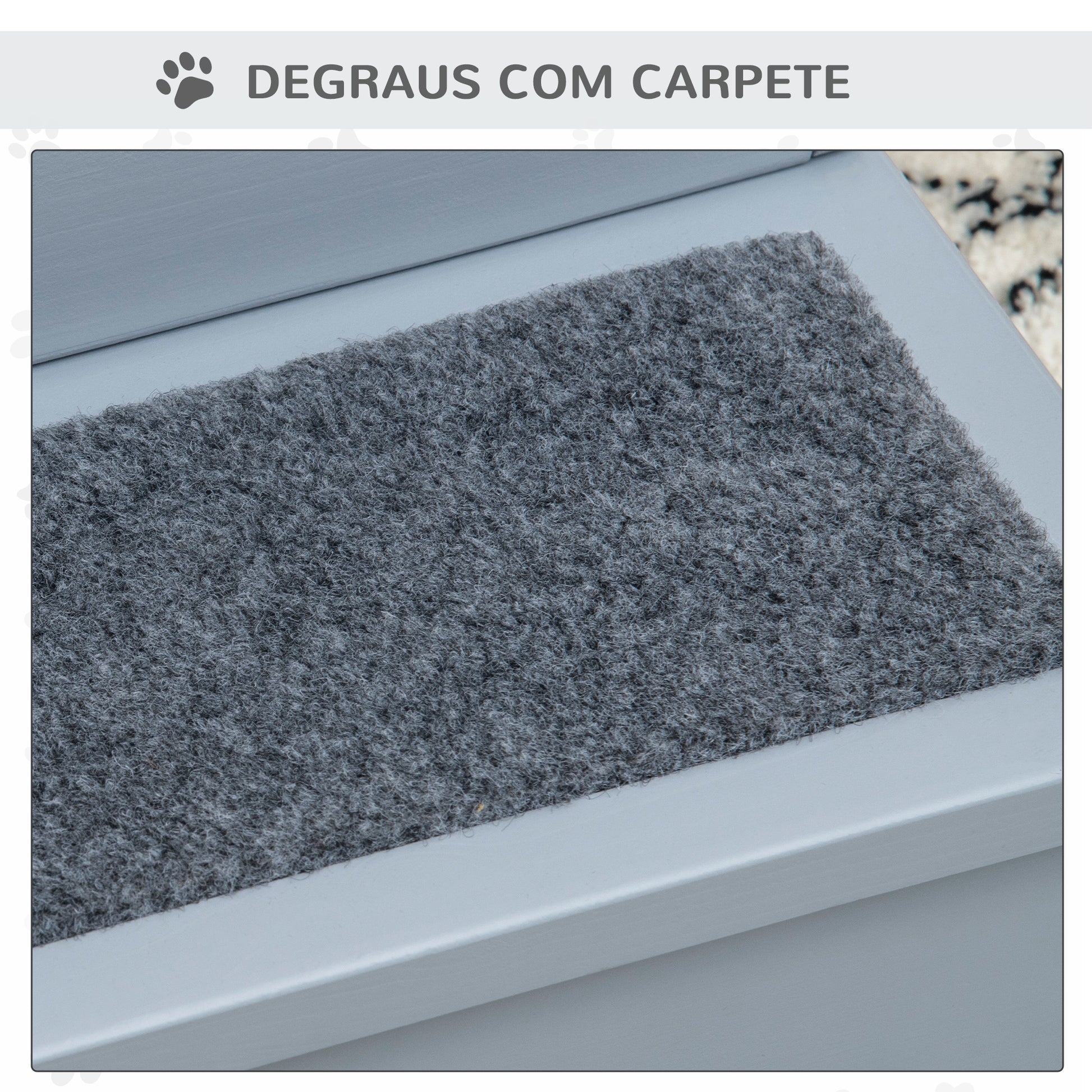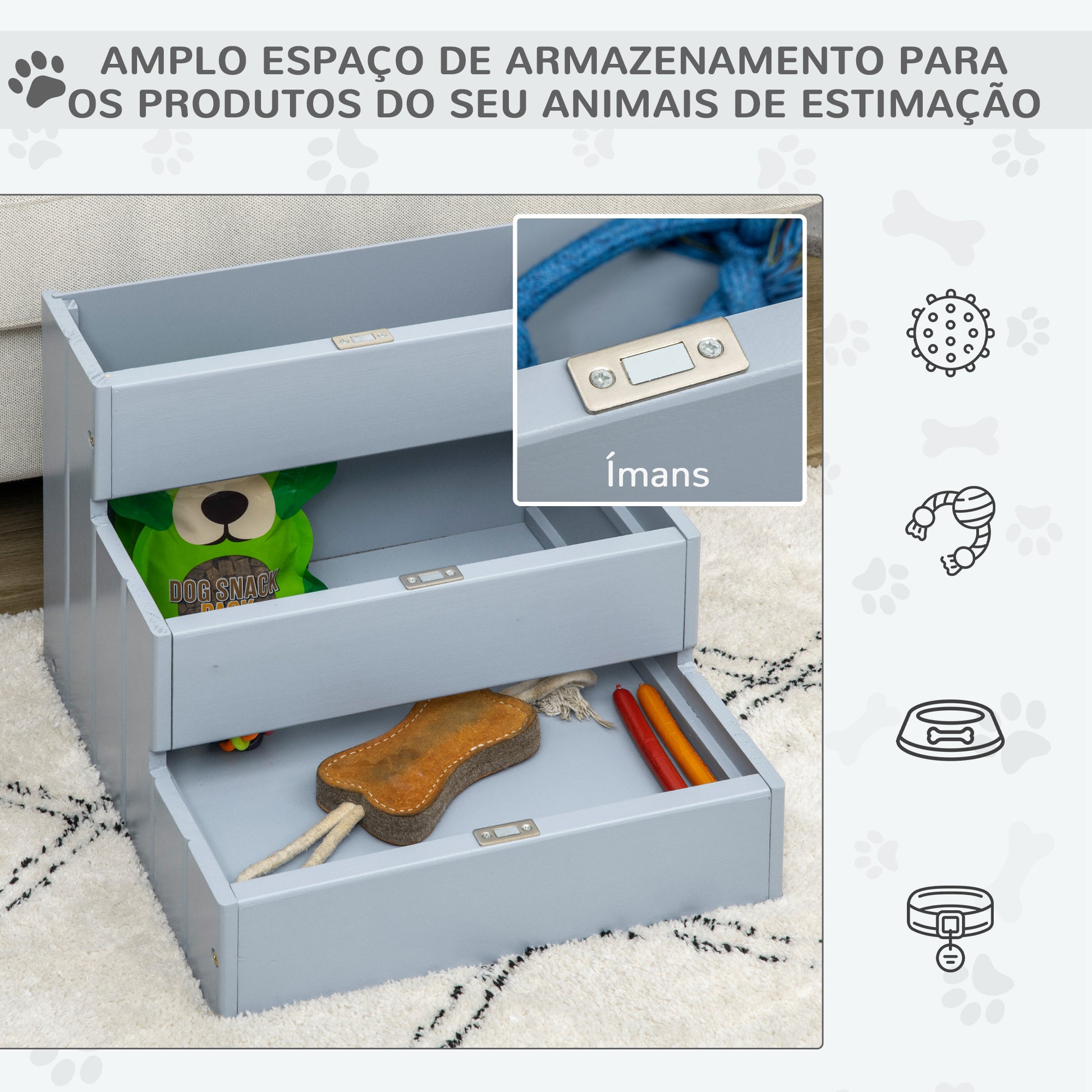 Escada para Animais de Estimação com 3 Degraus - 40,5x44,5x38 cm - Cinza