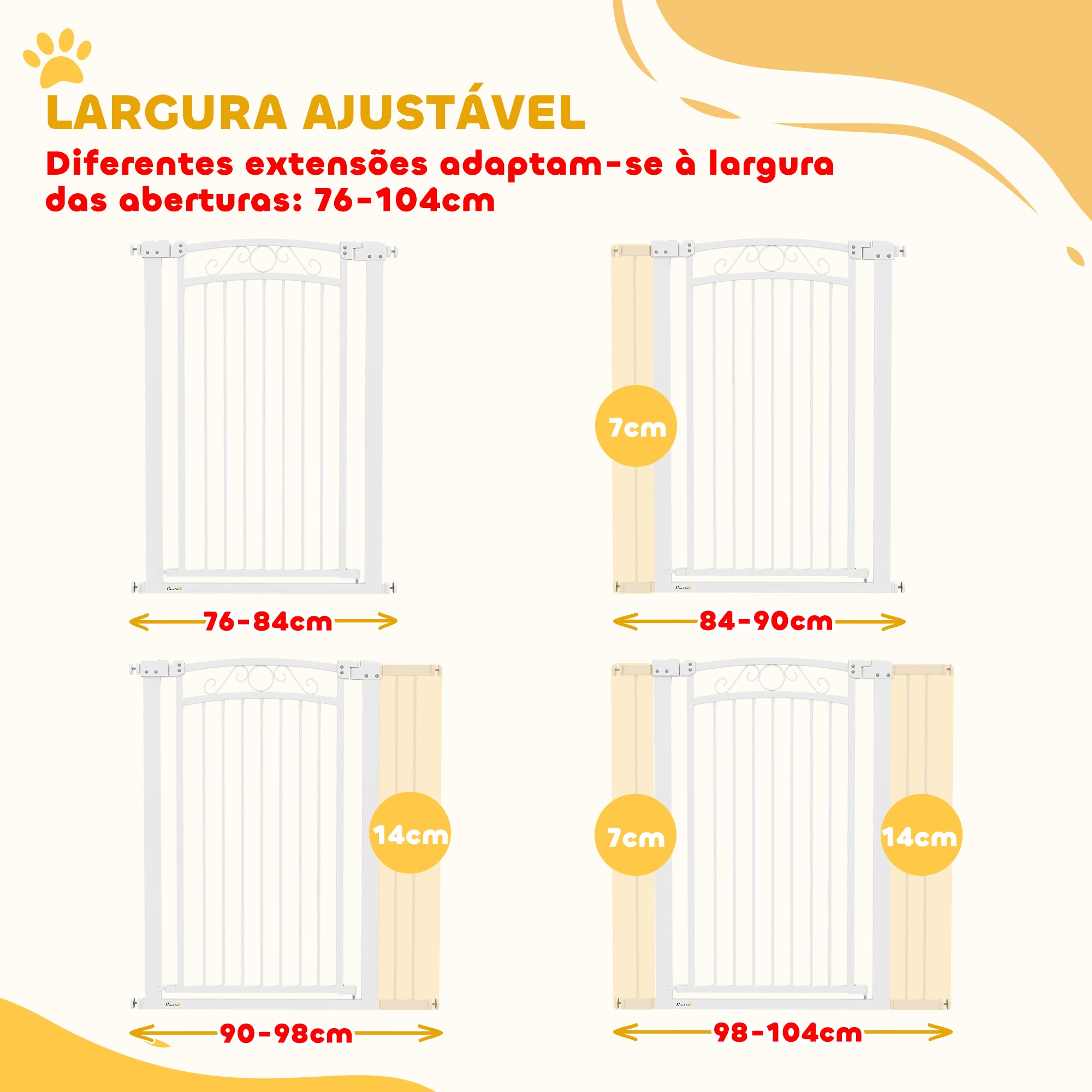 - Outras especificações: Largura de abertura da porta de 61 cm, inclui 2 extensões de 7 cm e 14 cm