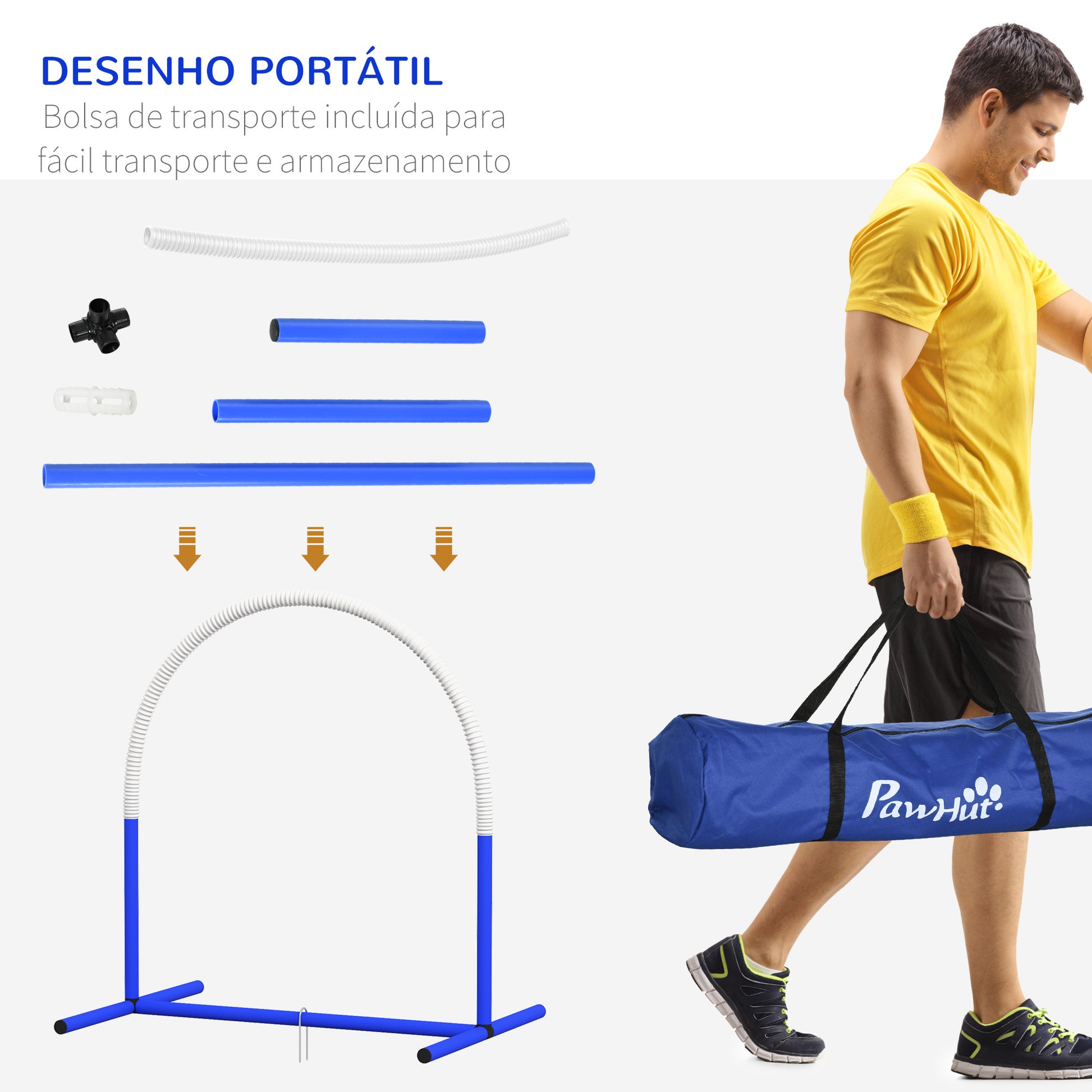 Enriqueça a rotina do seu cão com diversão e movimento com este Conjunto de Treinamento de Agilidade para Cães em azul. Composto por 4 arcos de obstáculos, este kit é ideal para treinar cachorros, cães mais velhos ou com limitações, promovendo um treino suave e agradável.