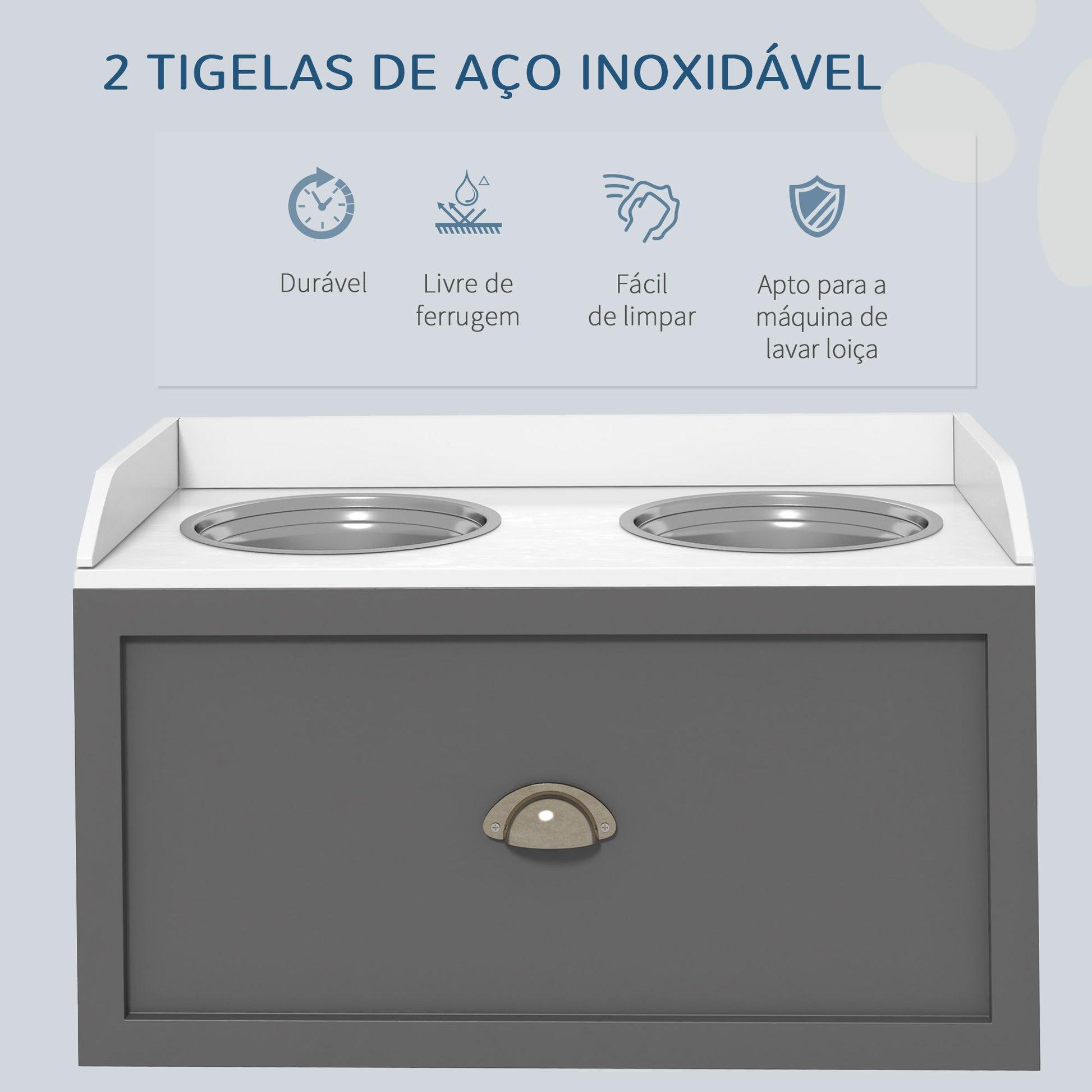 Comedouro Elevado para Cães – 60x30x36 cm – Cinzento – Aço inoxidável e MDF