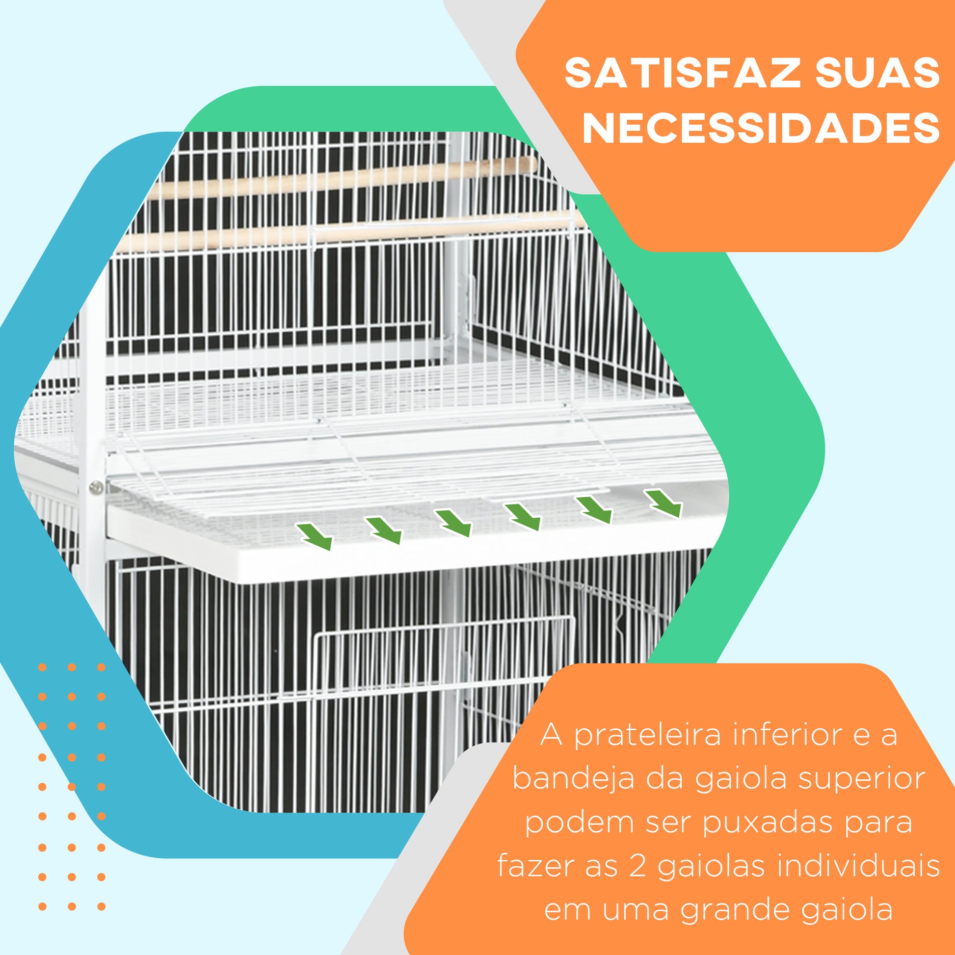 Proporcione o melhor ambiente para os seus pássaros com esta gaiola dupla 2 em 1, em elegante cor branca e medidas de 78x75x168 cm.