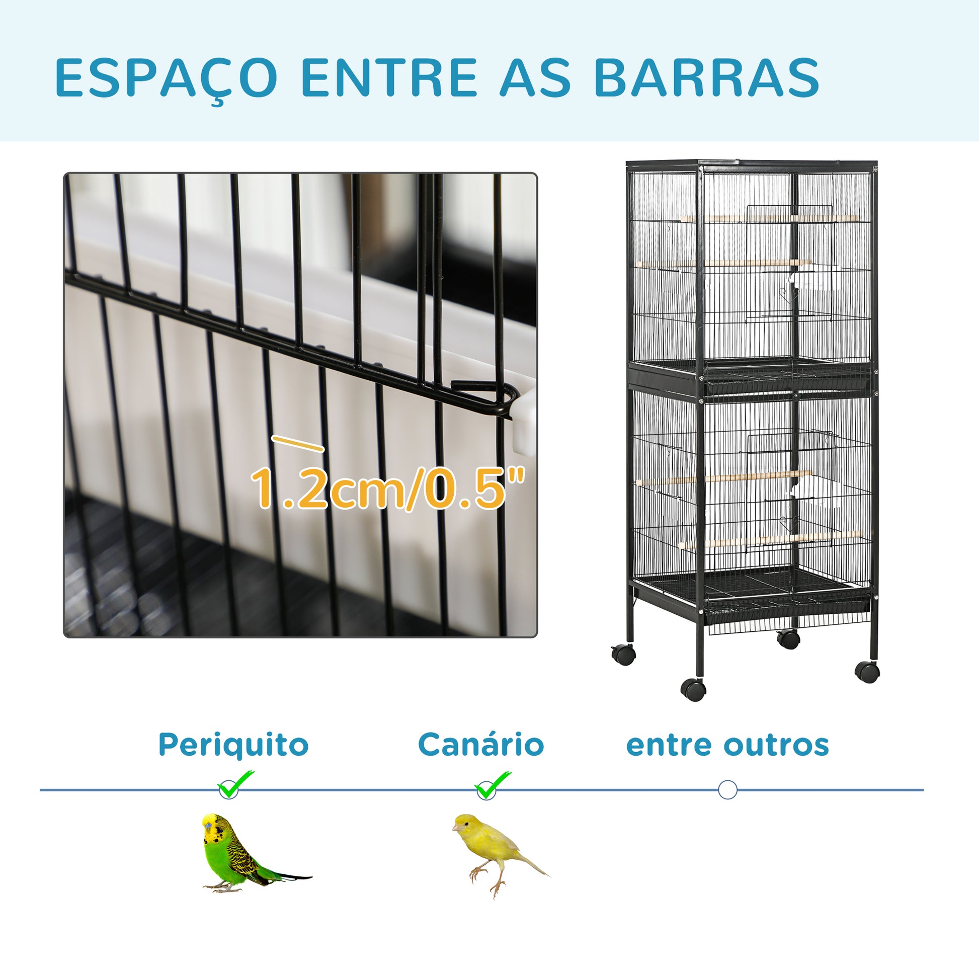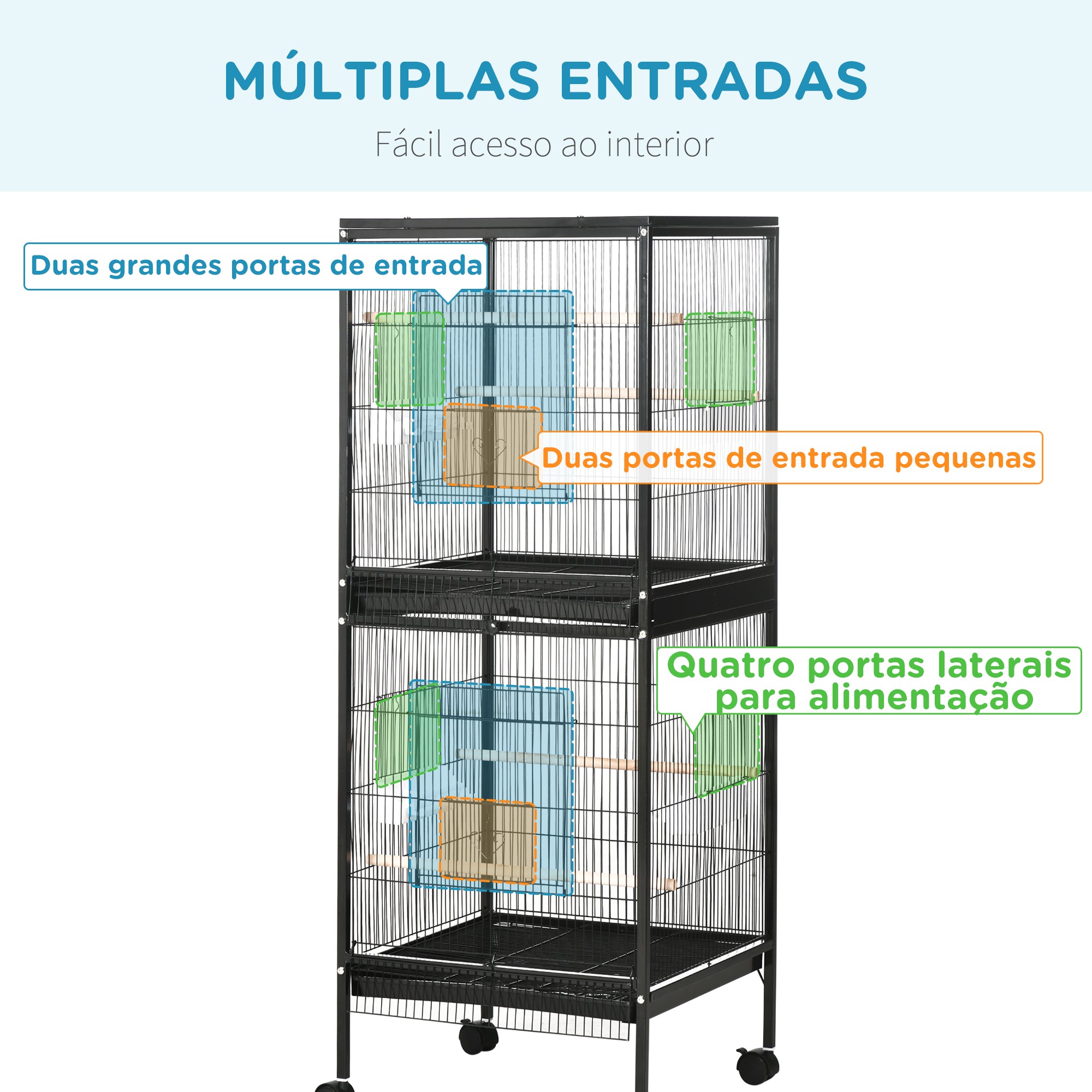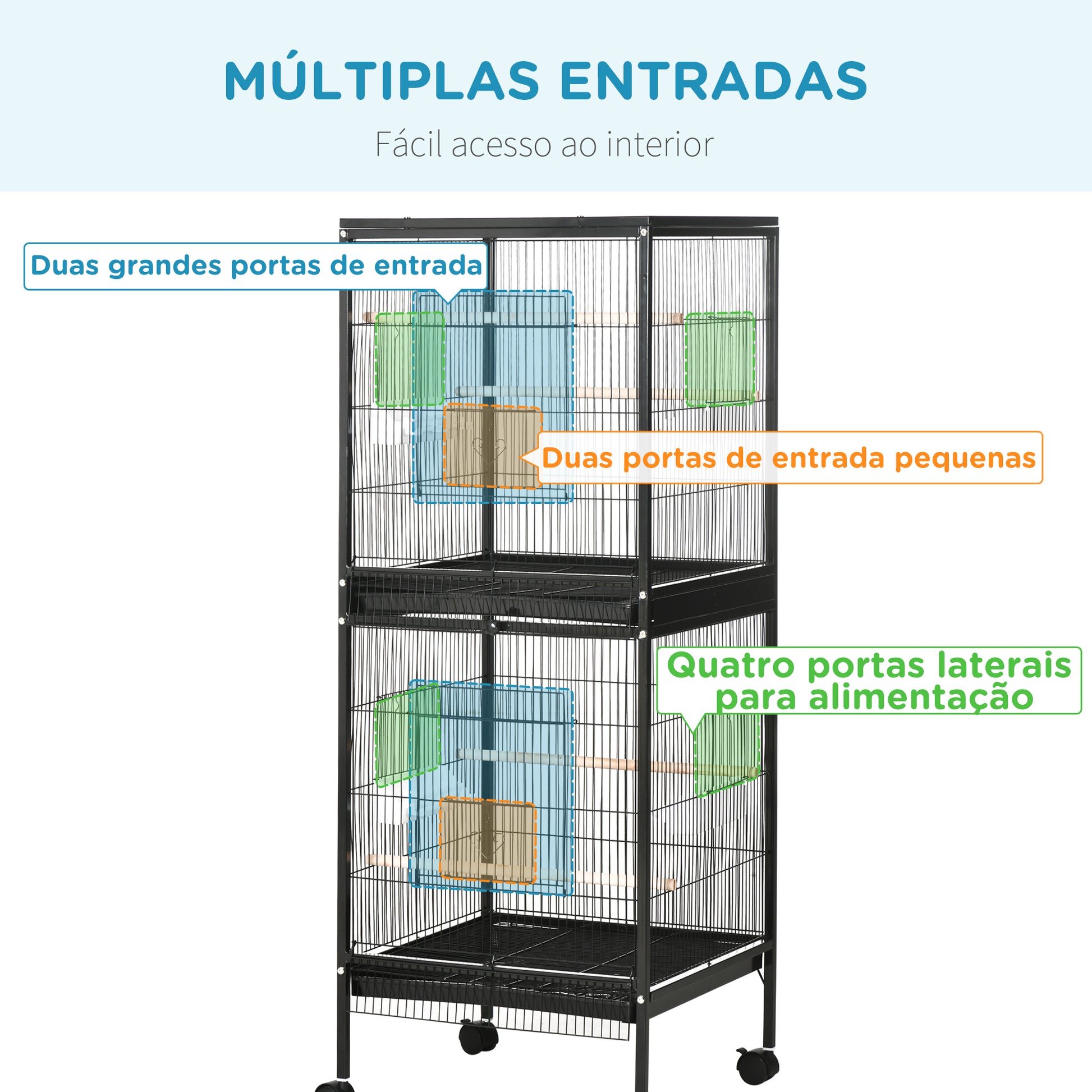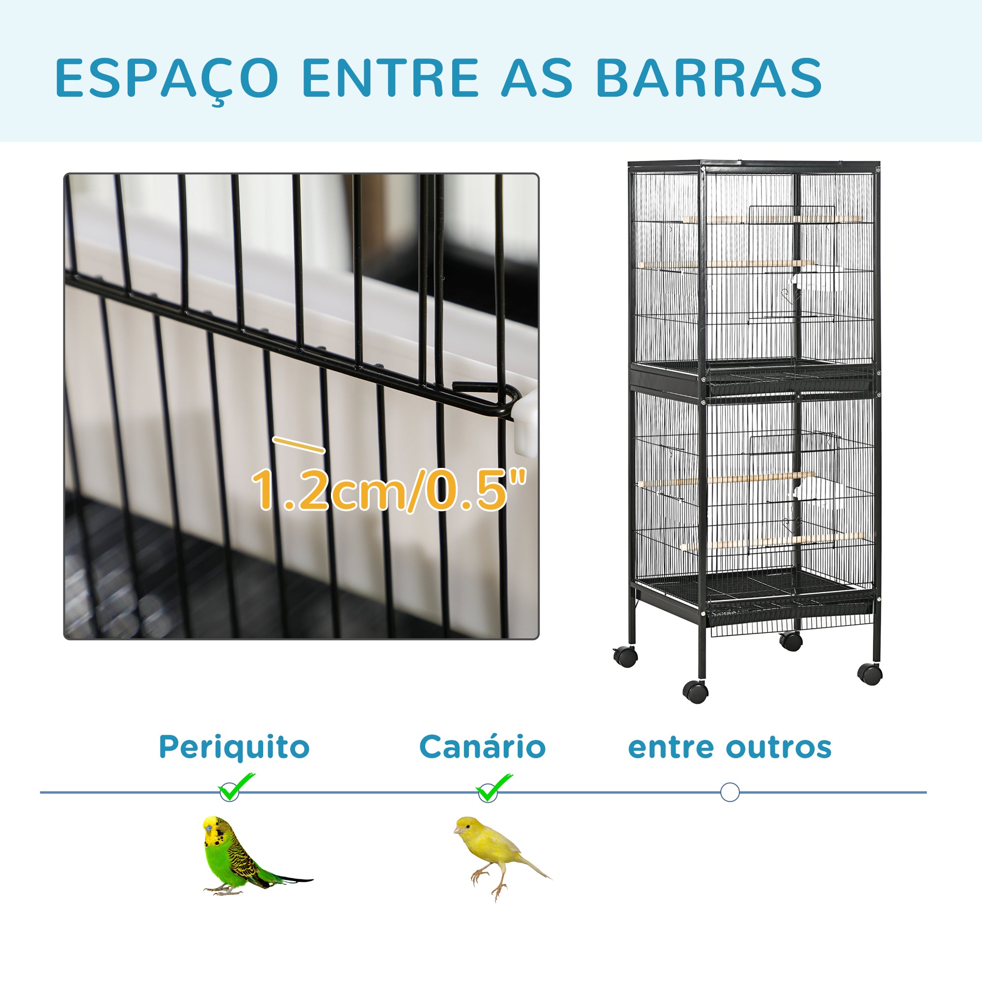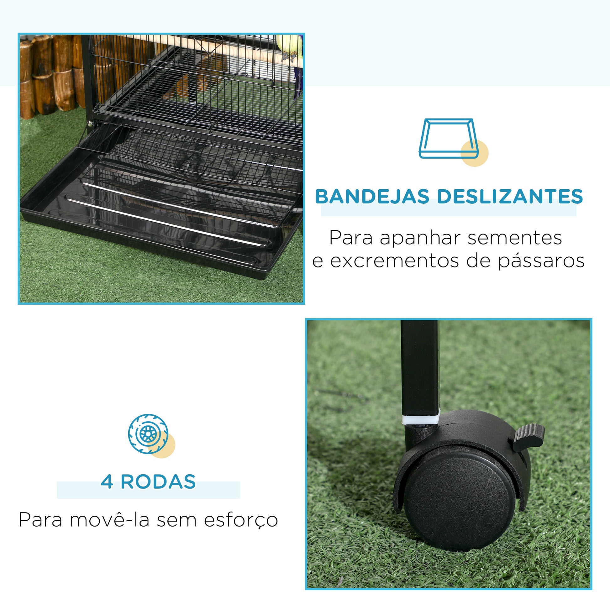 Gaiola para Pássaros com Rodas 51,5x50x140 cm - Preto