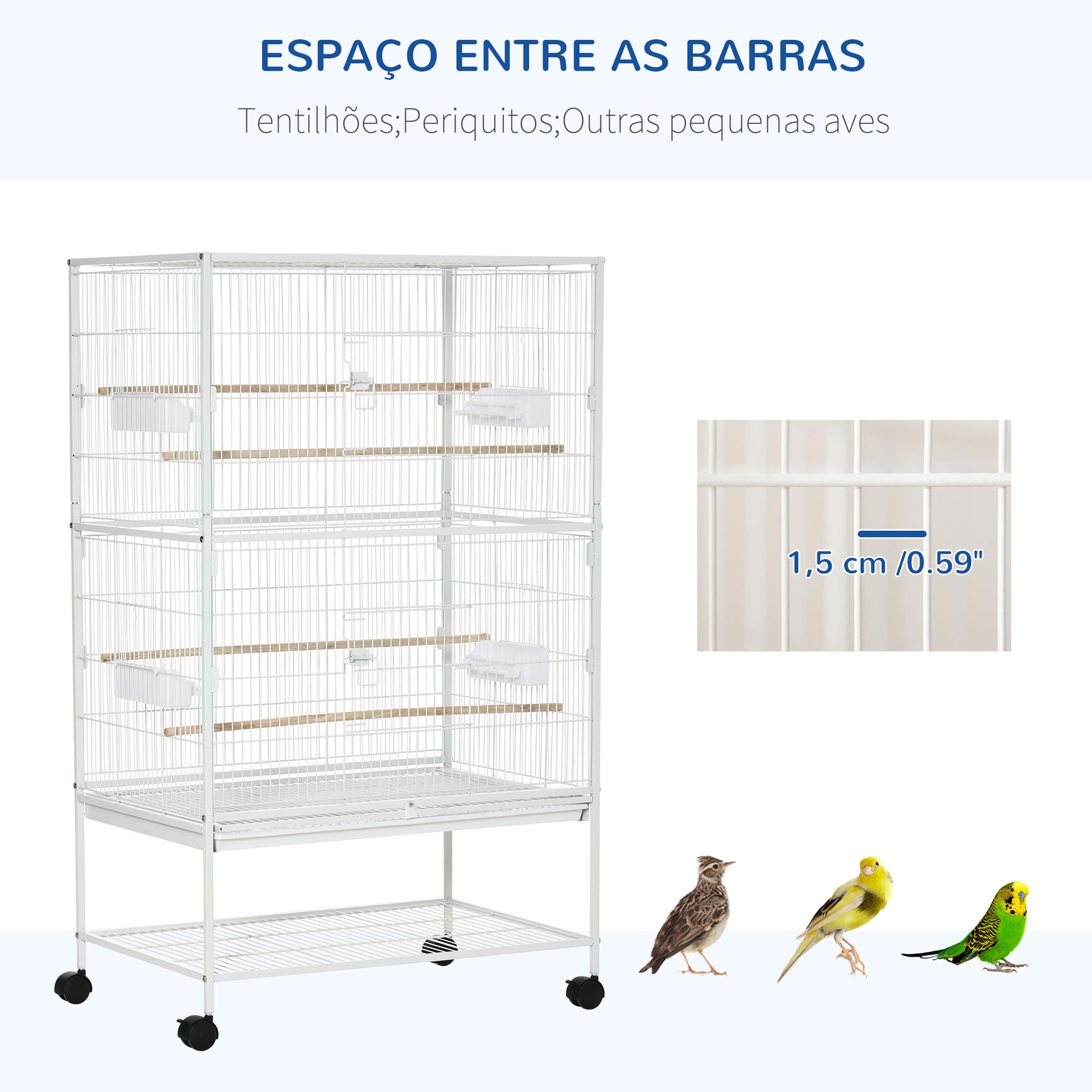 Gaiola para Pássaros Branca 78x52x132cm com Rodas, Bandeja Amovível e Prateleira