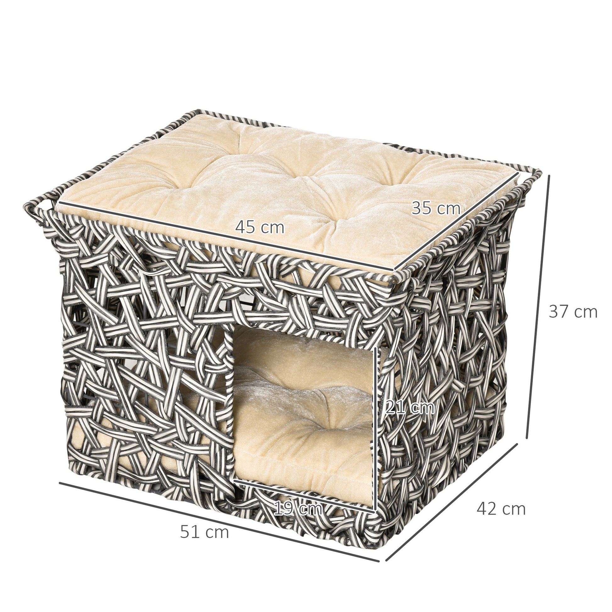 Cama Dupla de Vime para Gatos - 51x42x37cm - Cinza e Bege
