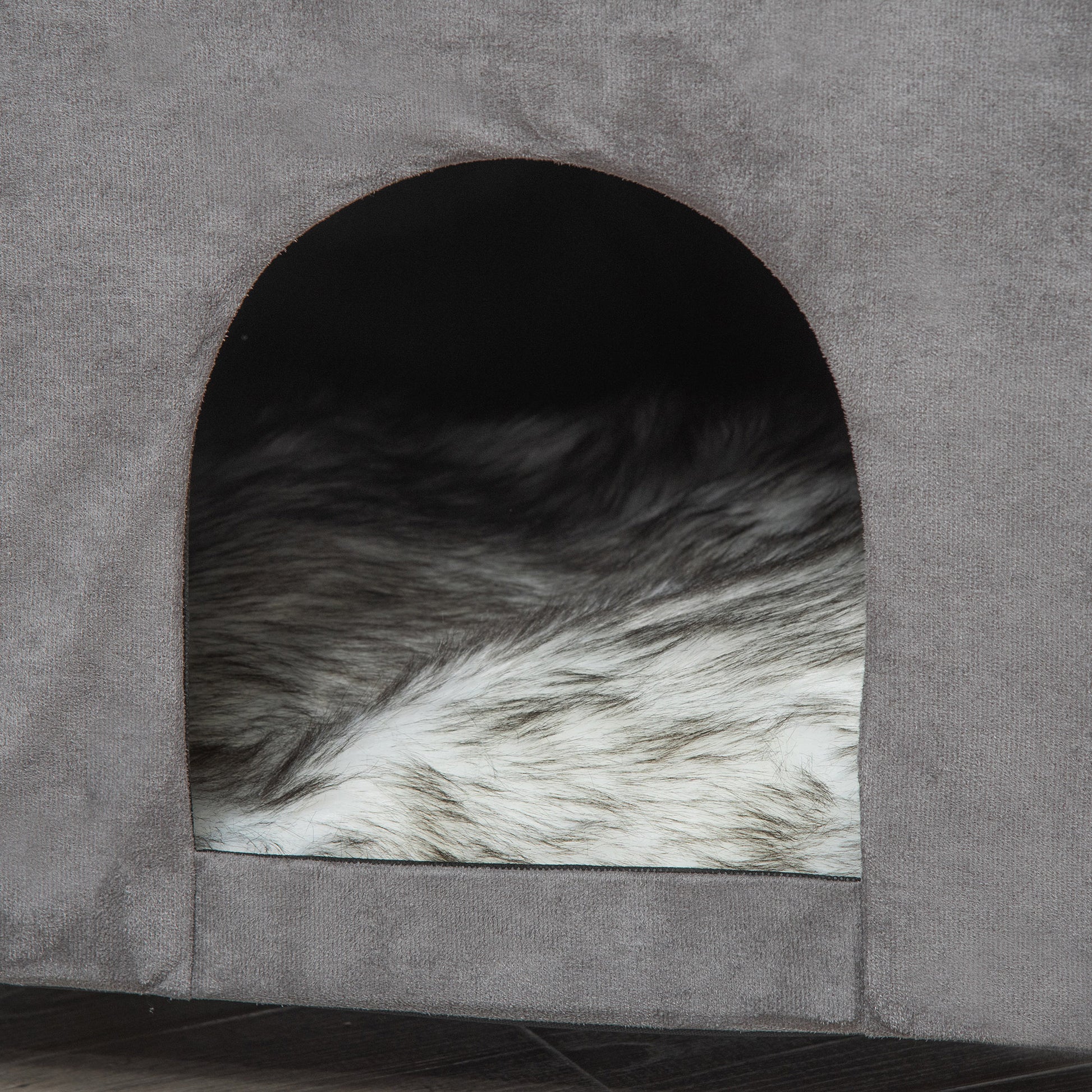Caverna 2 em 1 para Gatos com Banco Apoio – 60x45x44,5 cm – Cinza – MDF e pelúcia