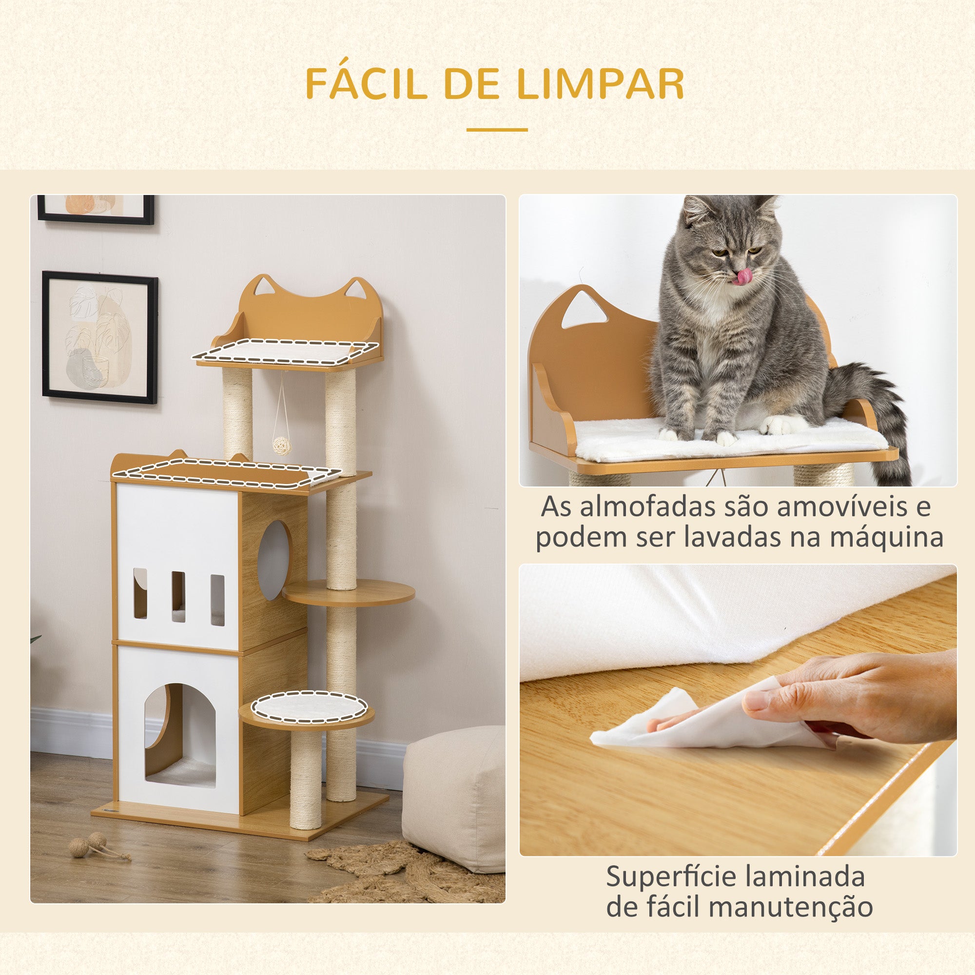 - Usos recomendados: Oferece ao seu gato um espaço multifuncional para arranhar, descansar e brincar.