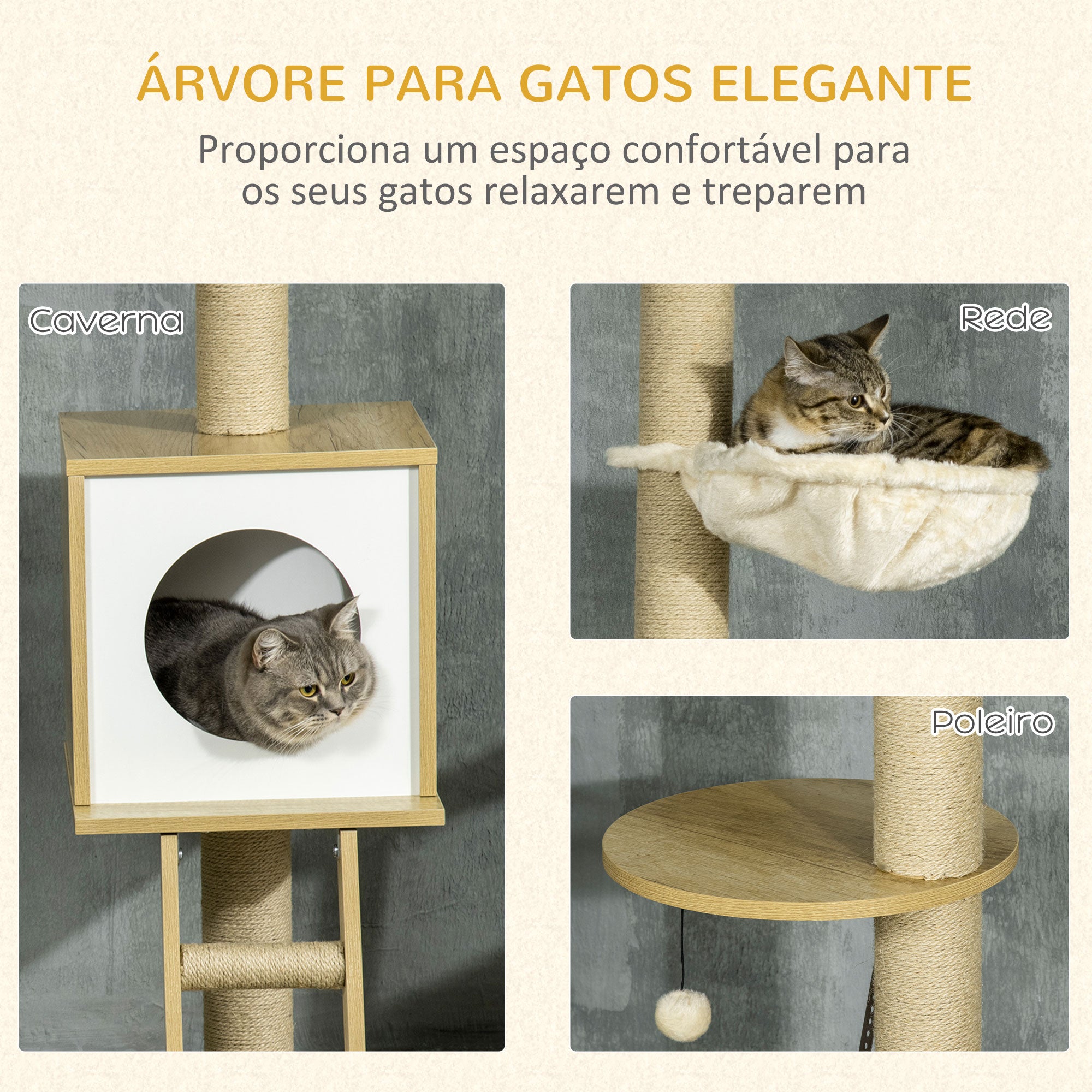 - Outras especificações: Inclui mini árvore para gatos, poste arranhador independente, barra de tensão para fixação, bola e cordas suspensas